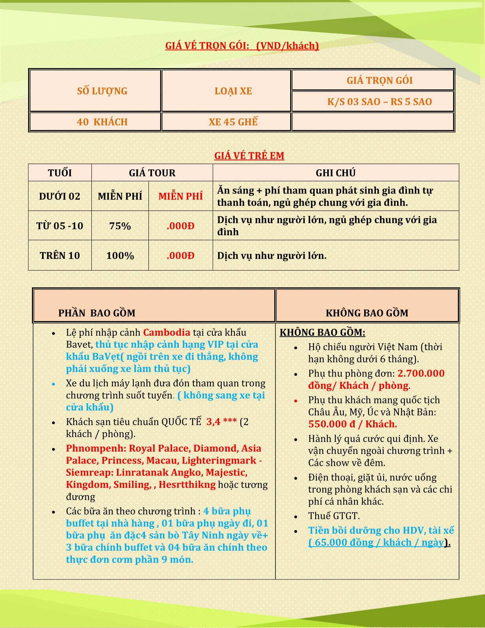GIÁ VÉ TRỌN GÓI:   (VND/khách)
