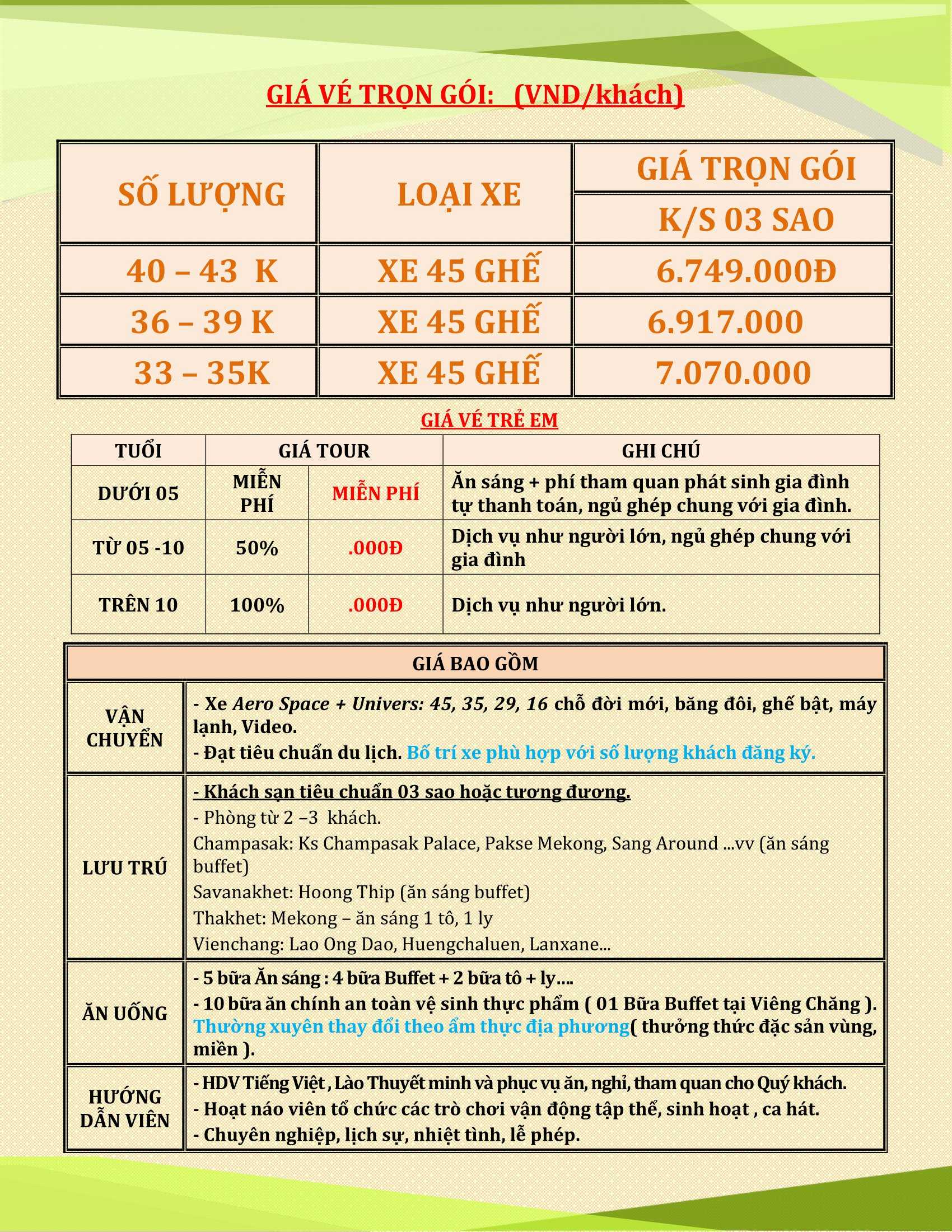 GIÁ VÉ TRỌN GÓI:   (VND/khách)