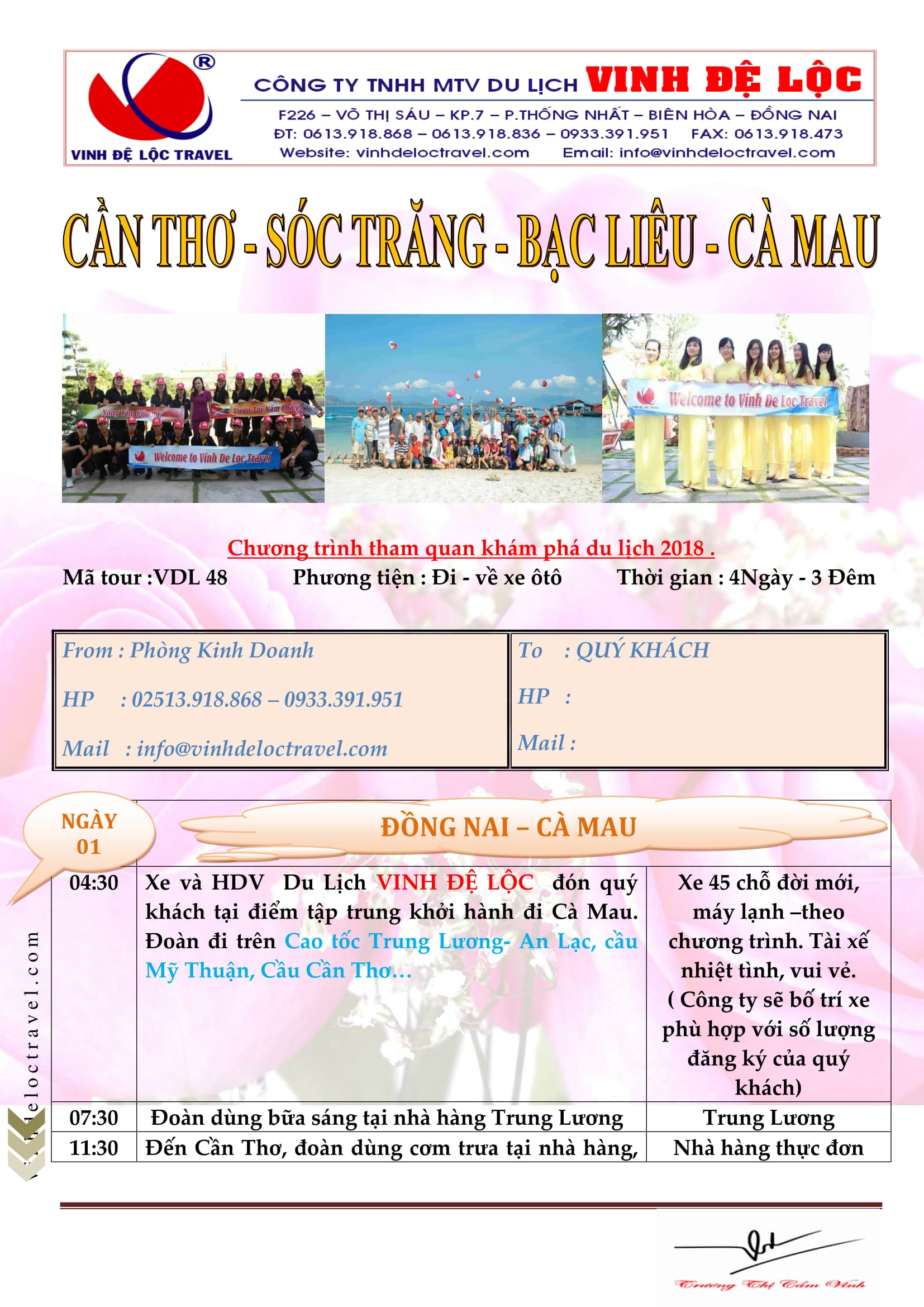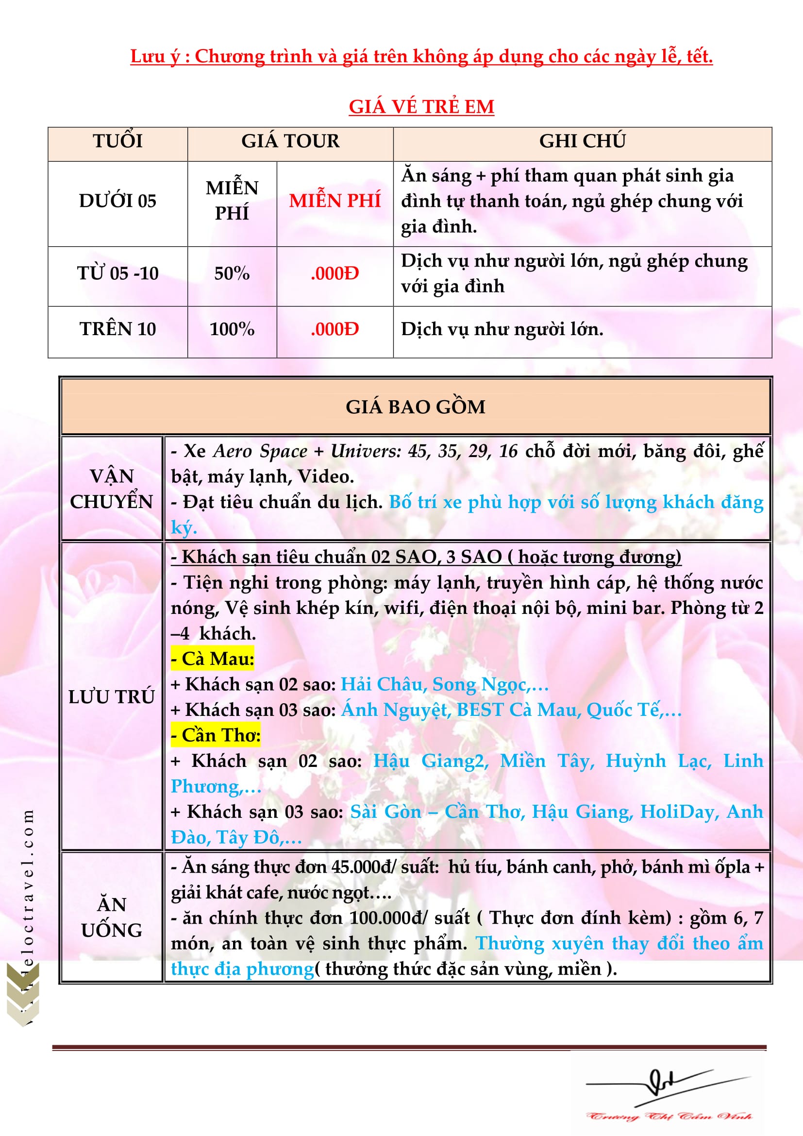 CẦN THƠ - SÓC TRĂNG - BẠC LIÊU - CÀ MAU 4N3Đ