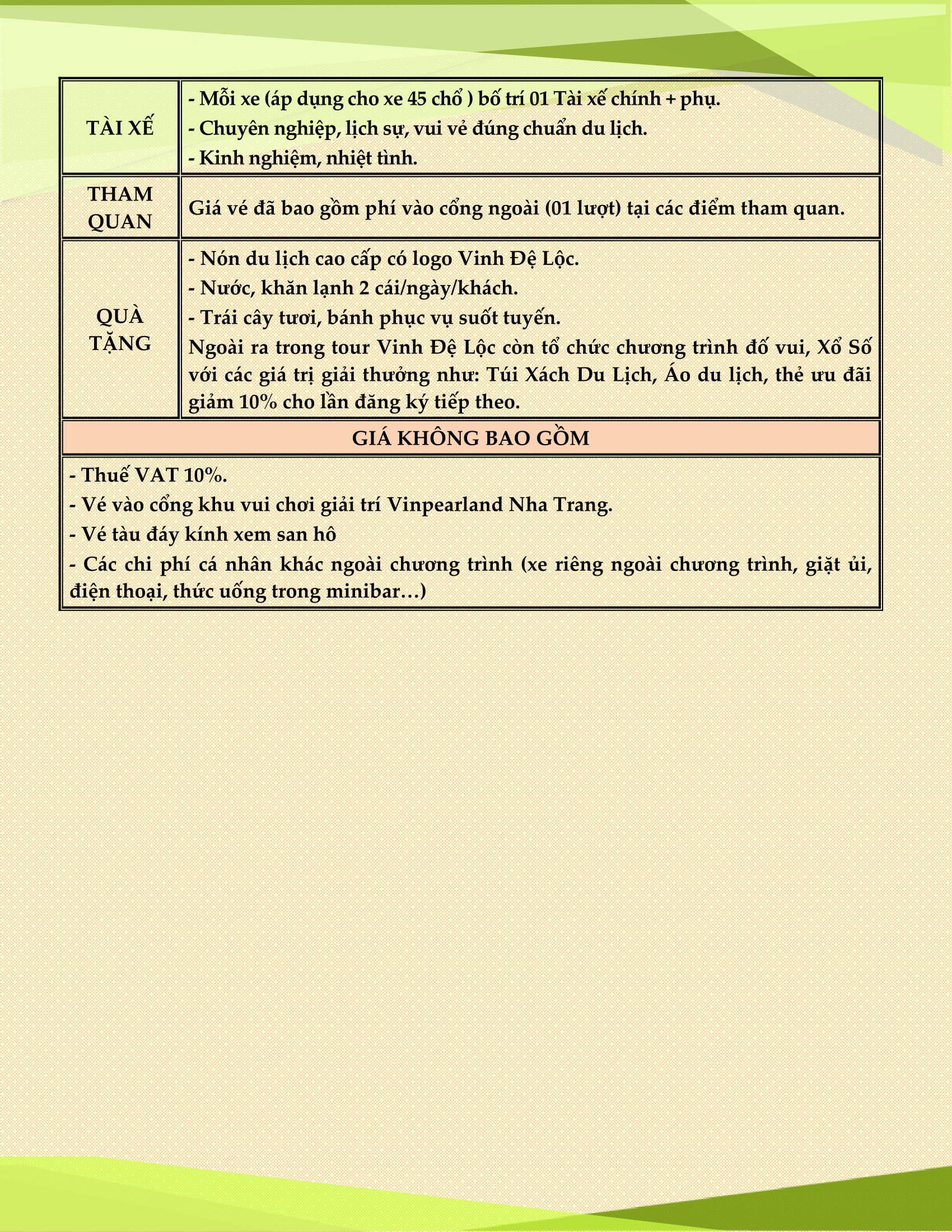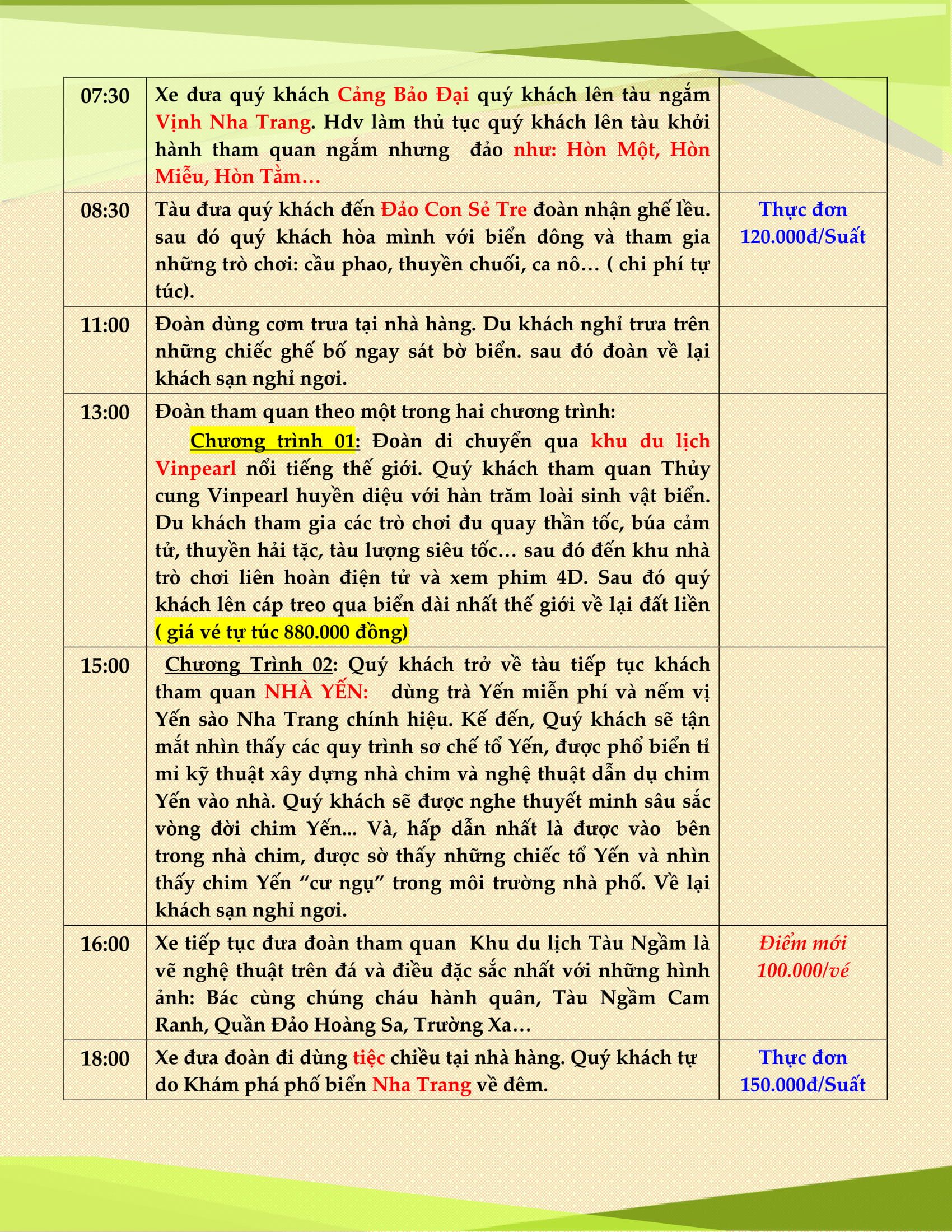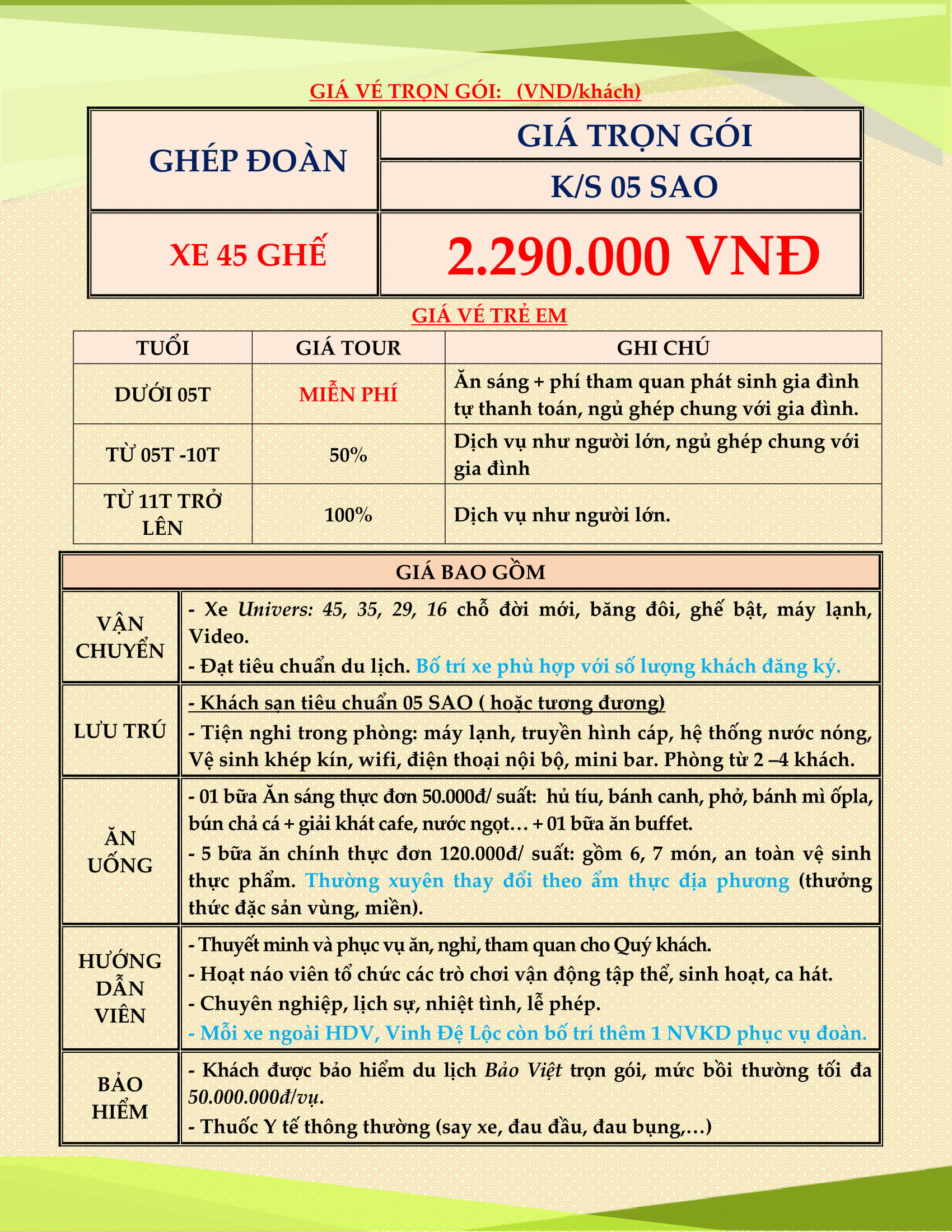 GIÁ VÉ TRỌN GÓI:   (VND/khách)
