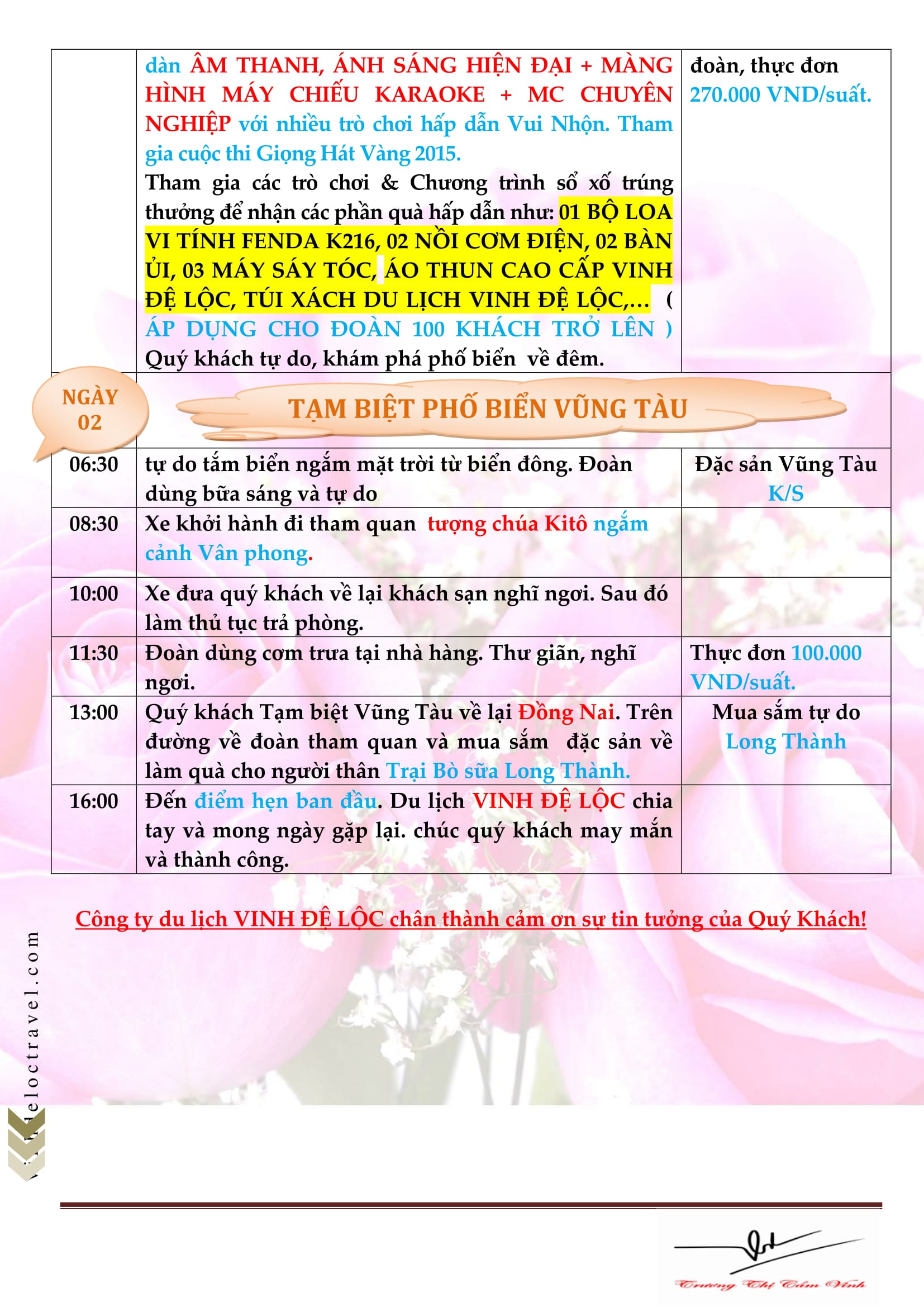 CÔNG TY TNHH MTV DU LỊCH VINH ĐỆ LỘC