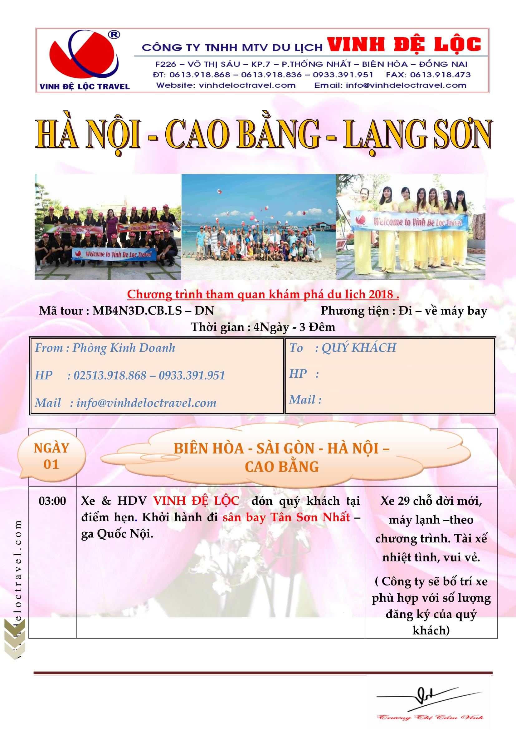 HÀ NỘI - CAO BẰNG - LẠNG SƠN 4N3Đ