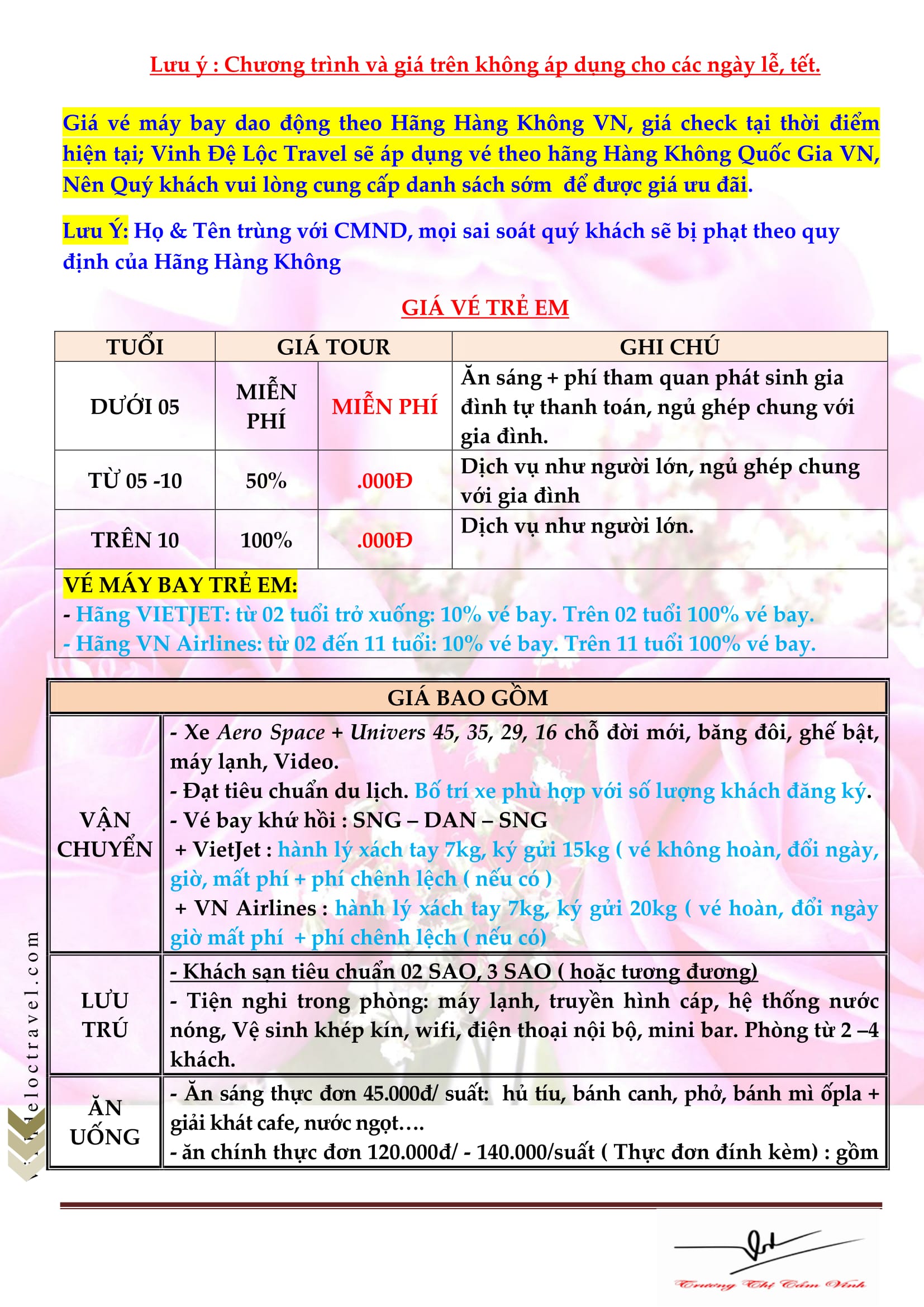 GIÁ VÉ TRỌN GÓI:   (VND/khách)