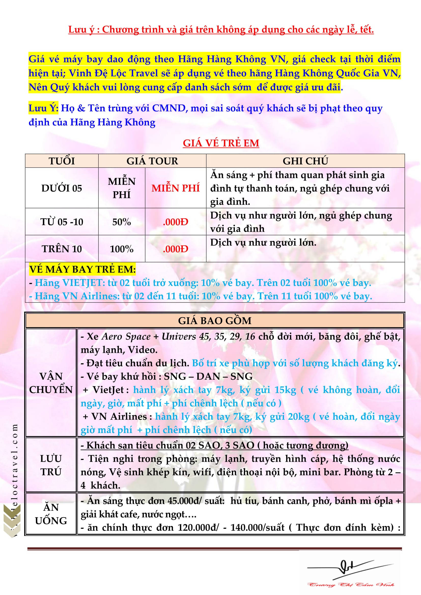 GIÁ VÉ TRỌN GÓI:   (VND/khách)