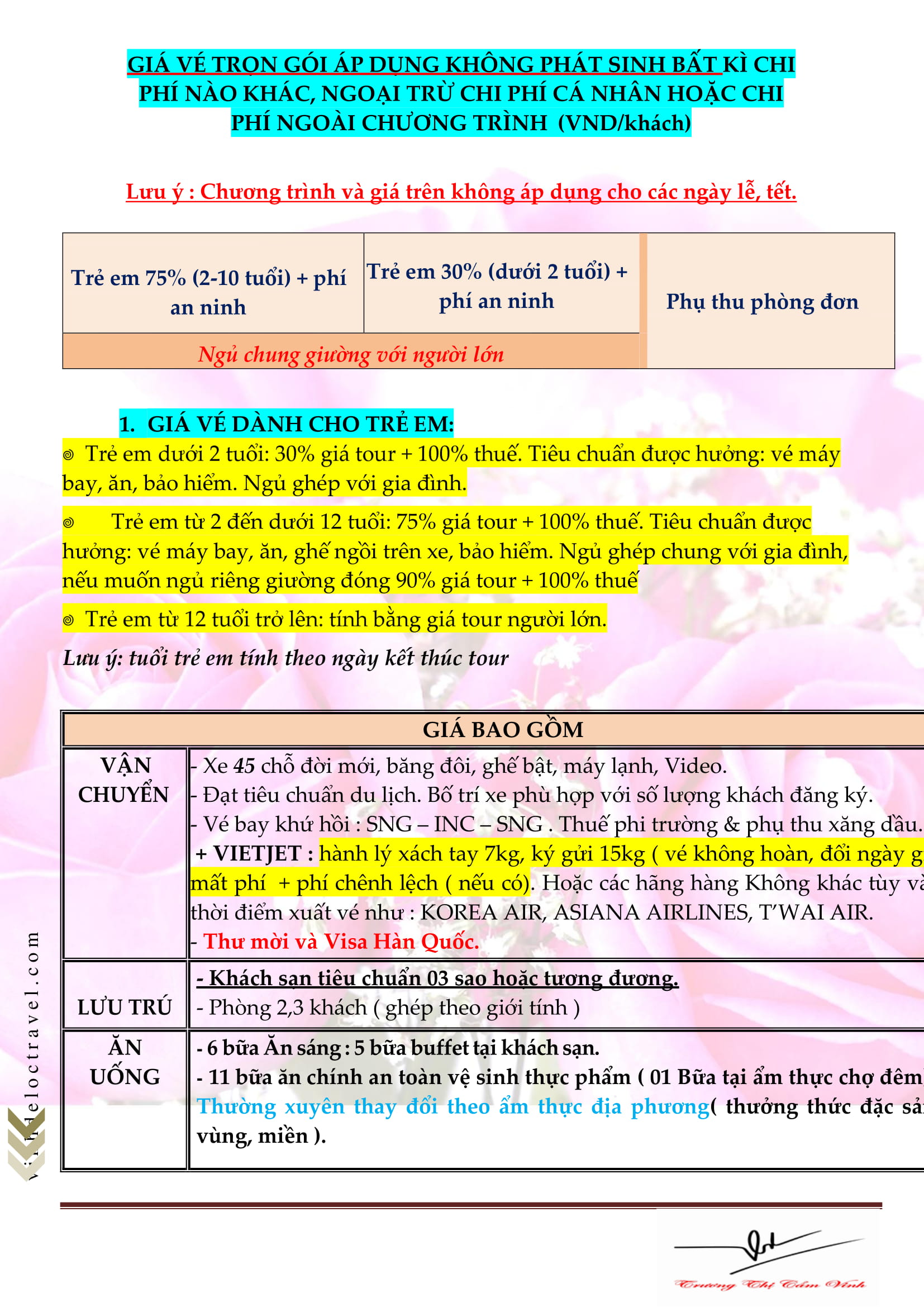 GIÁ VÉ TRỌN GÓI:   (VND/khách)