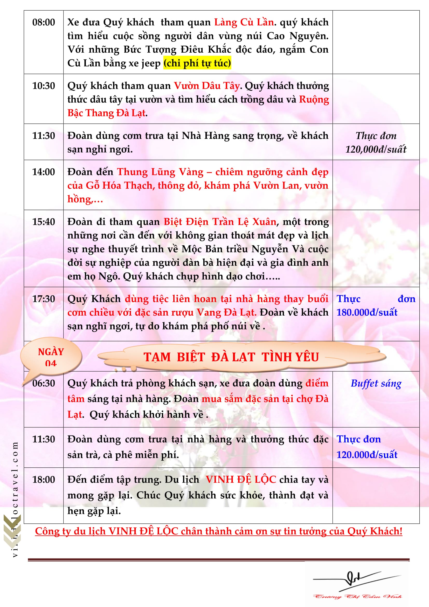 CÔNG TY TNHH MTV DU LỊCH VINH ĐỆ LỘC