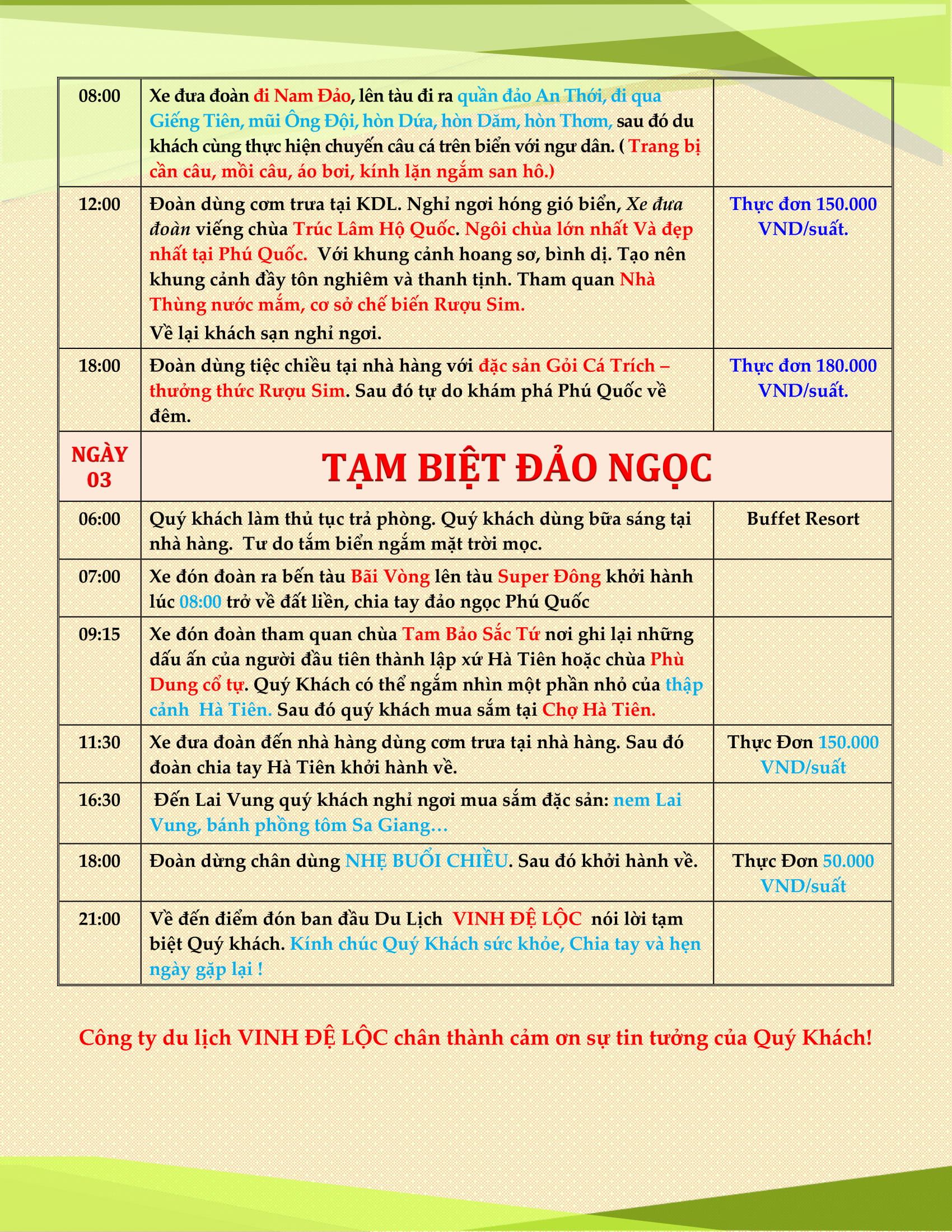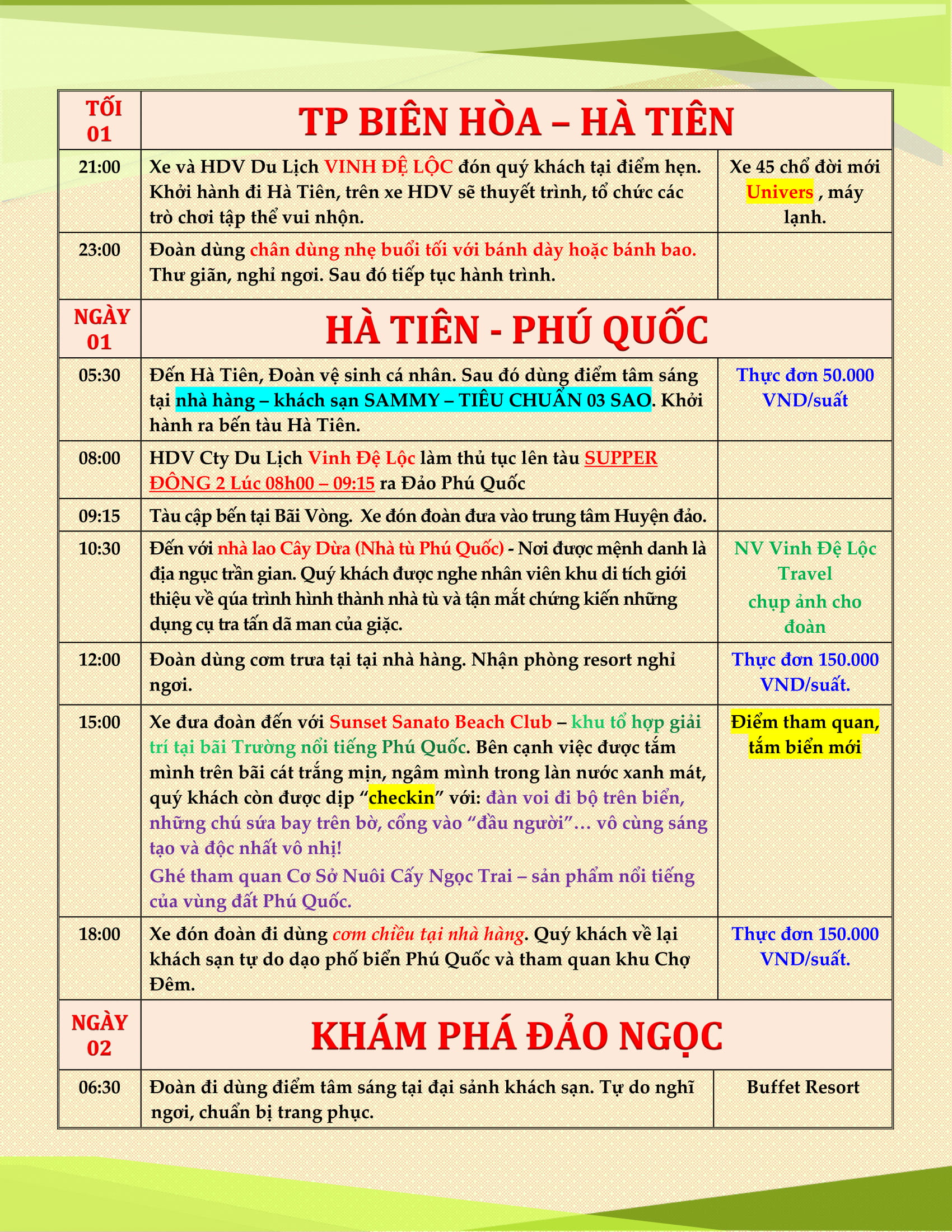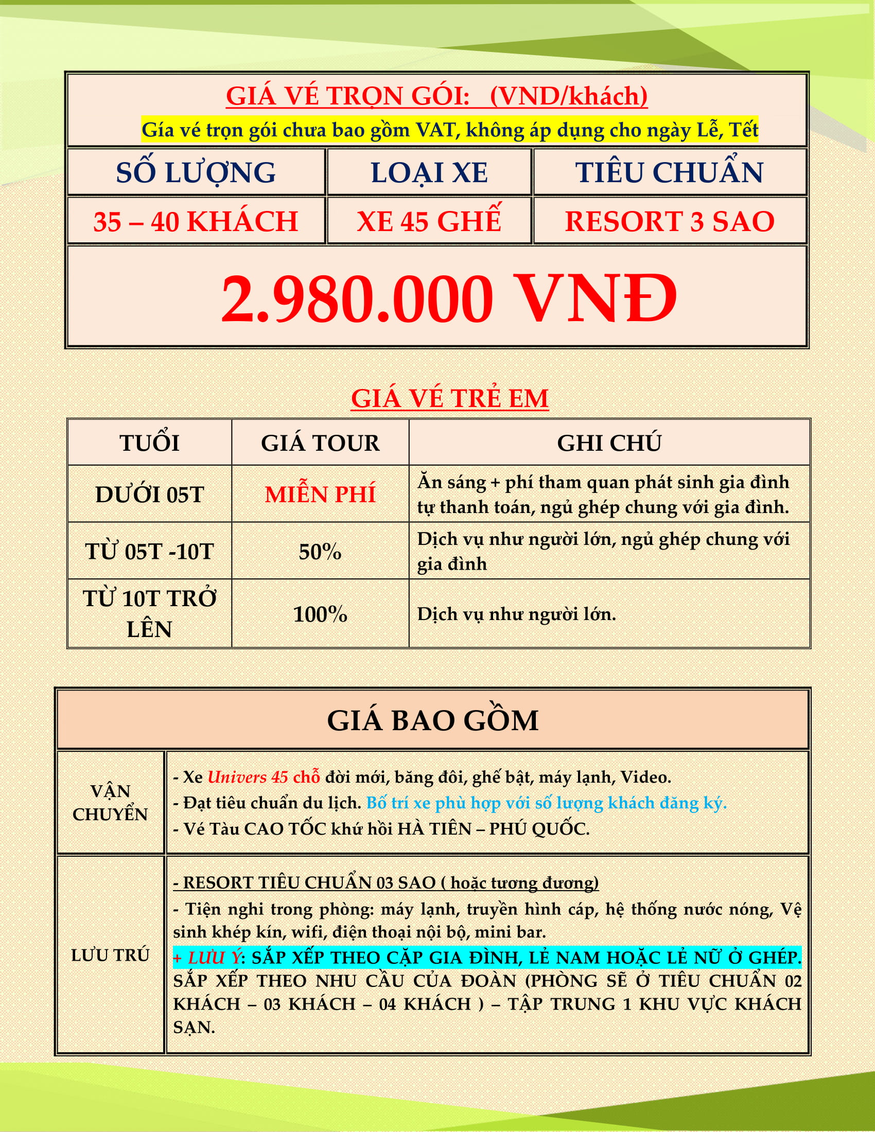 GIÁ VÉ TRỌN GÓI:   (VND/khách)
