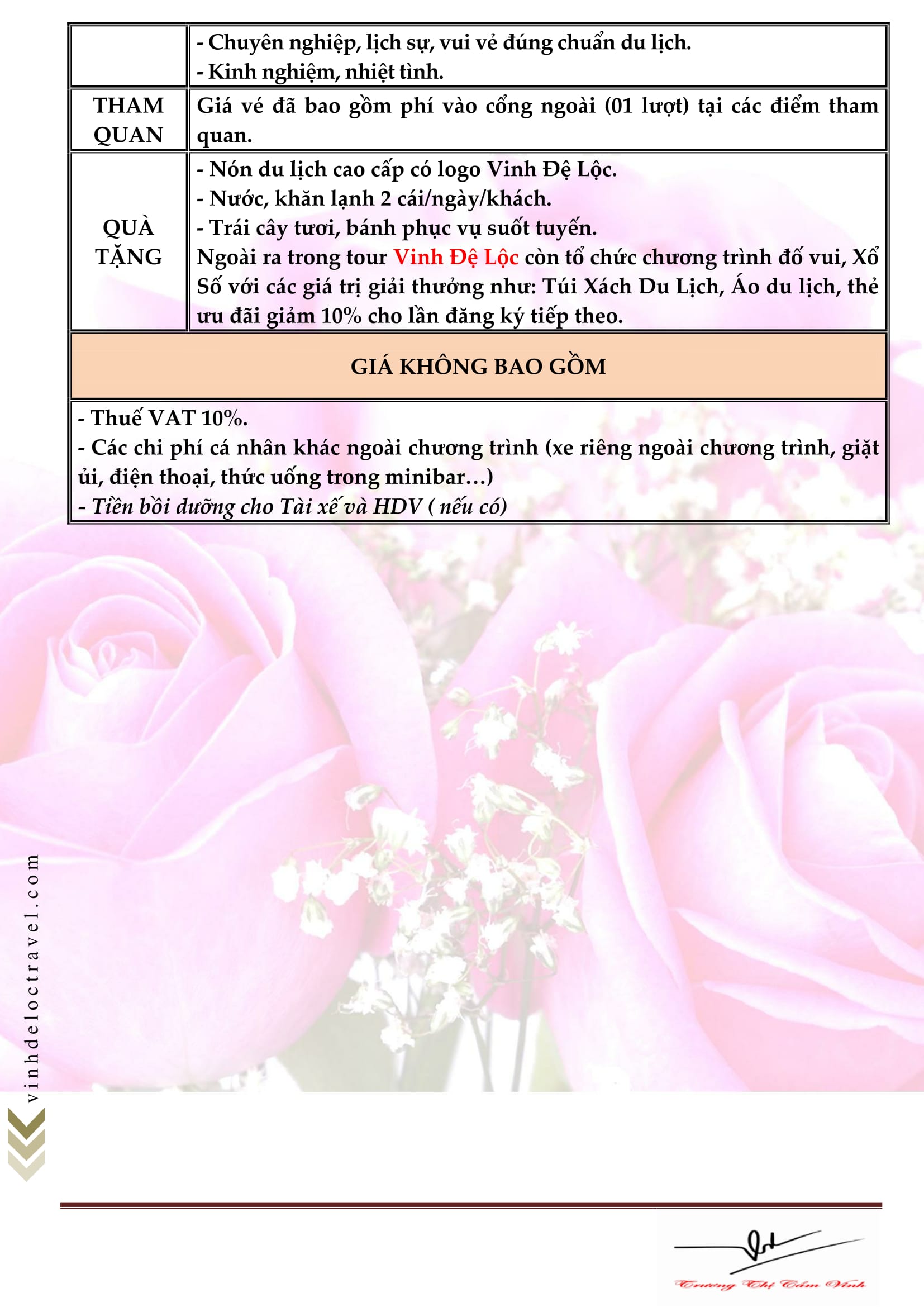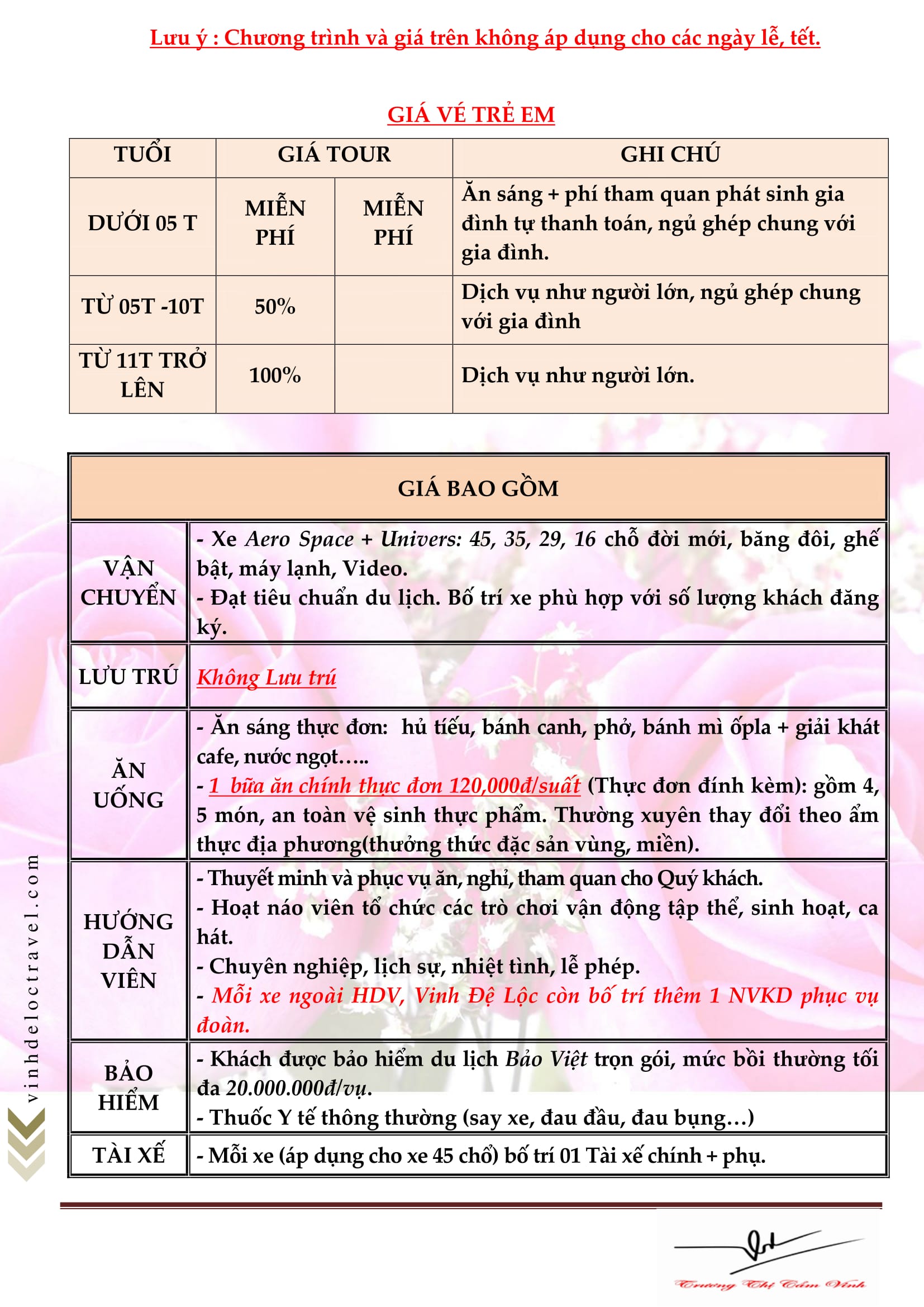 GIÁ VÉ TRỌN GÓI: (VND/khách)