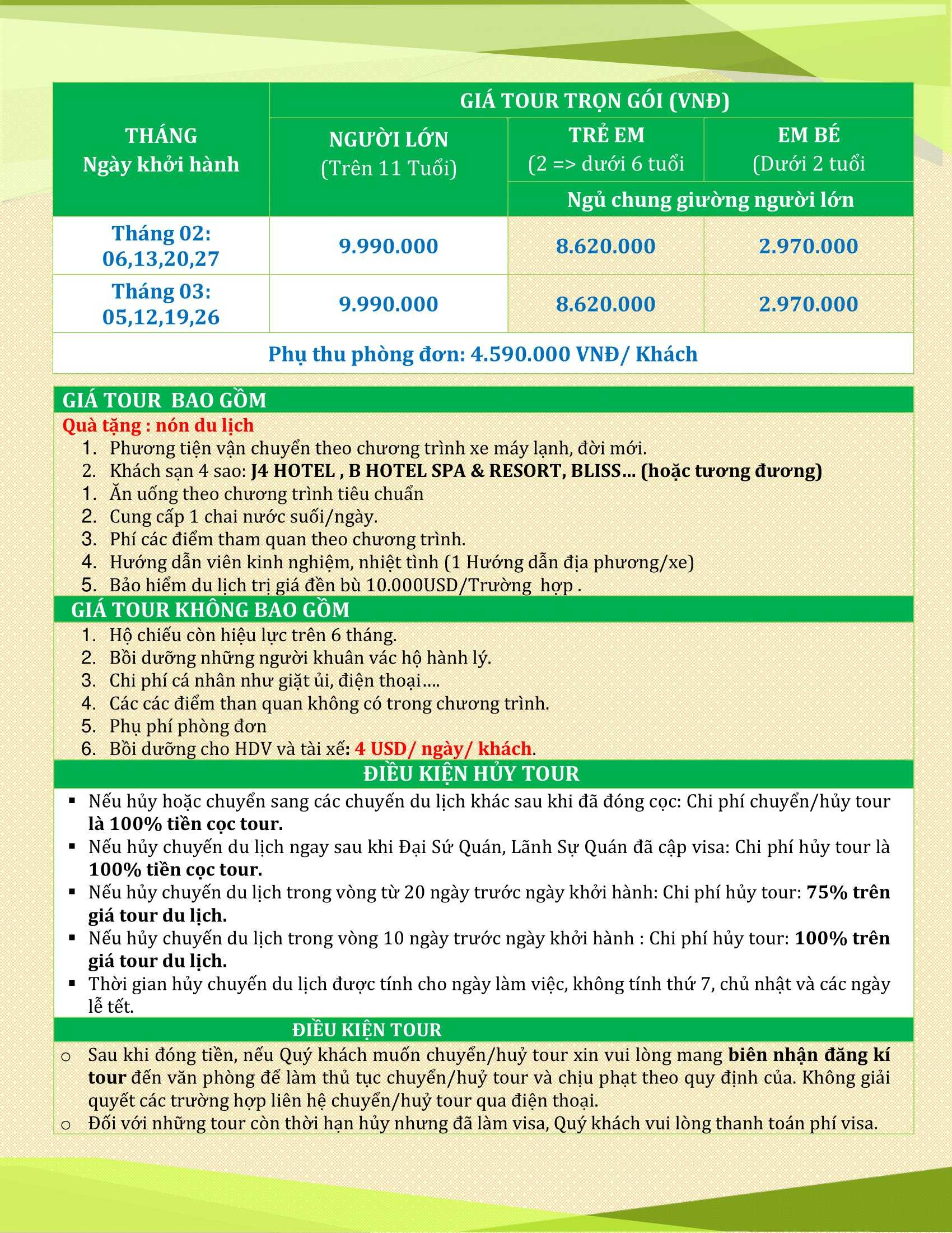 GIÁ VÉ TRỌN GÓI:   (VND/khách)