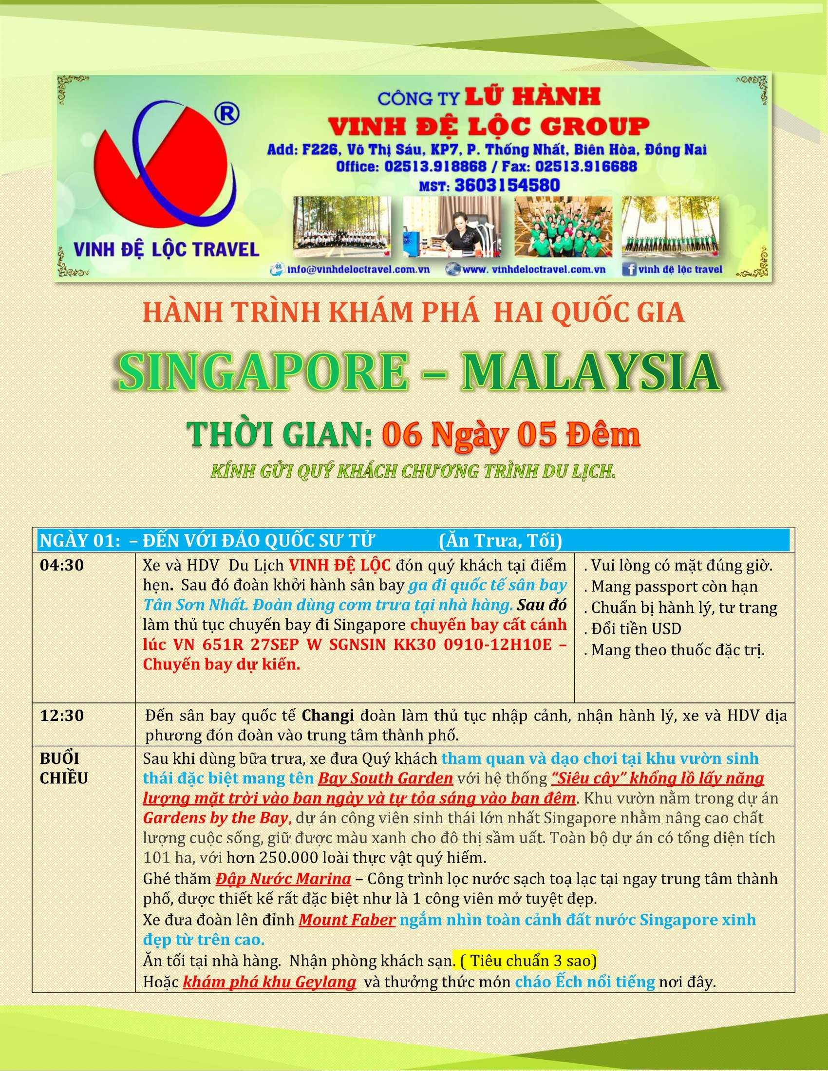SINGAPORE - MALAYSIA 6N5D