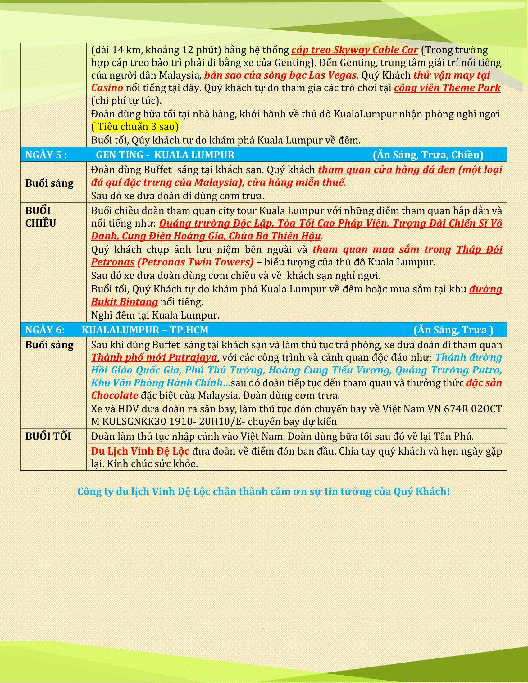Thời gian : 6 Ngày - 5 Đêm