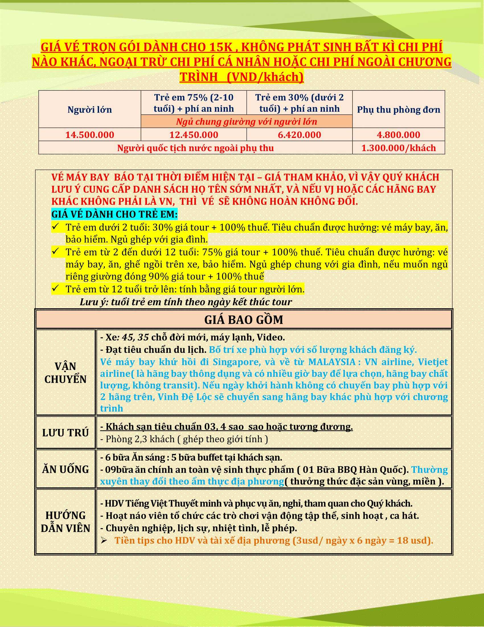 GIÁ VÉ TRỌN GÓI:   (VND/khách)