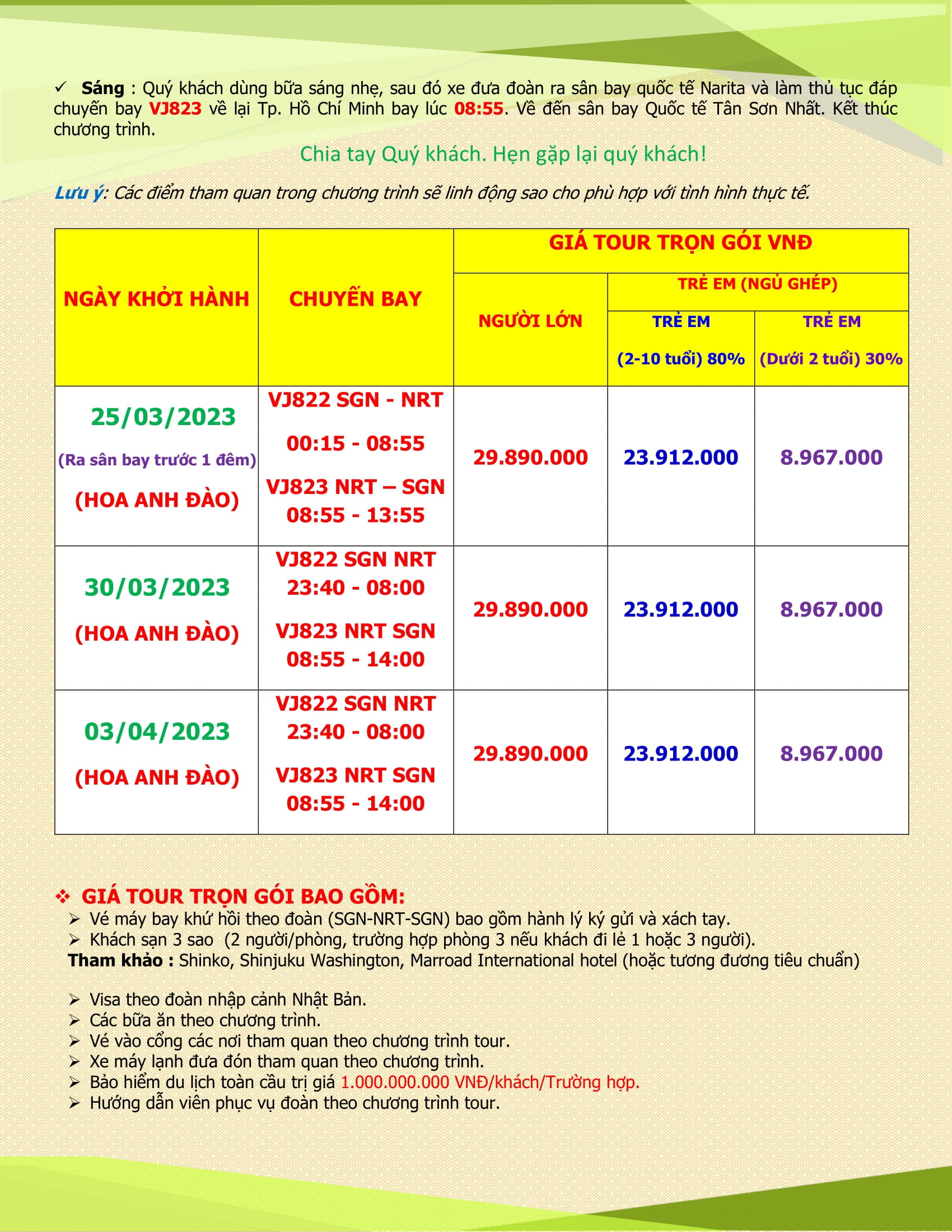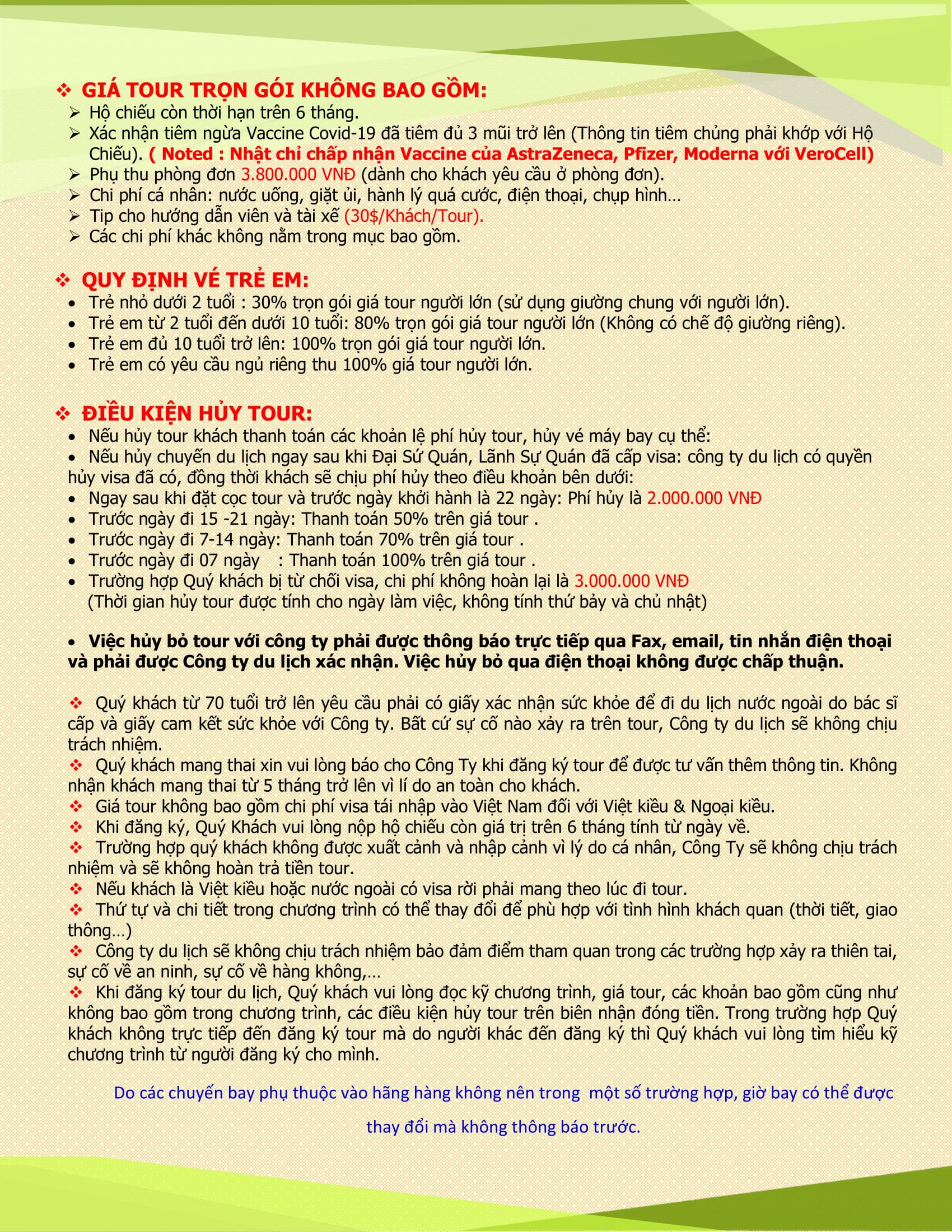 GIÁ VÉ TRỌN GÓI:   (VND/khách)