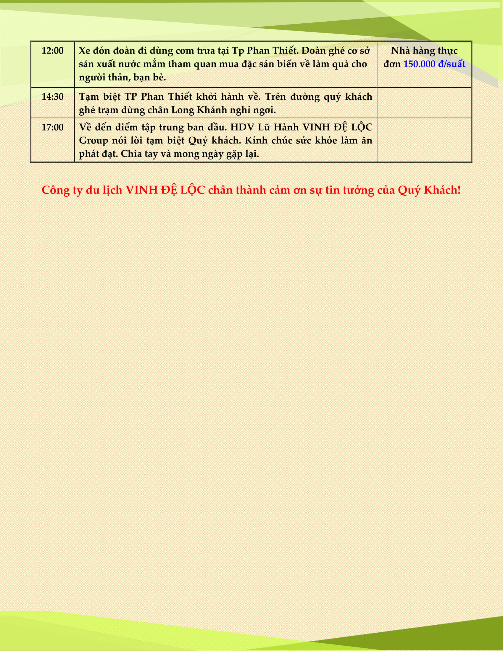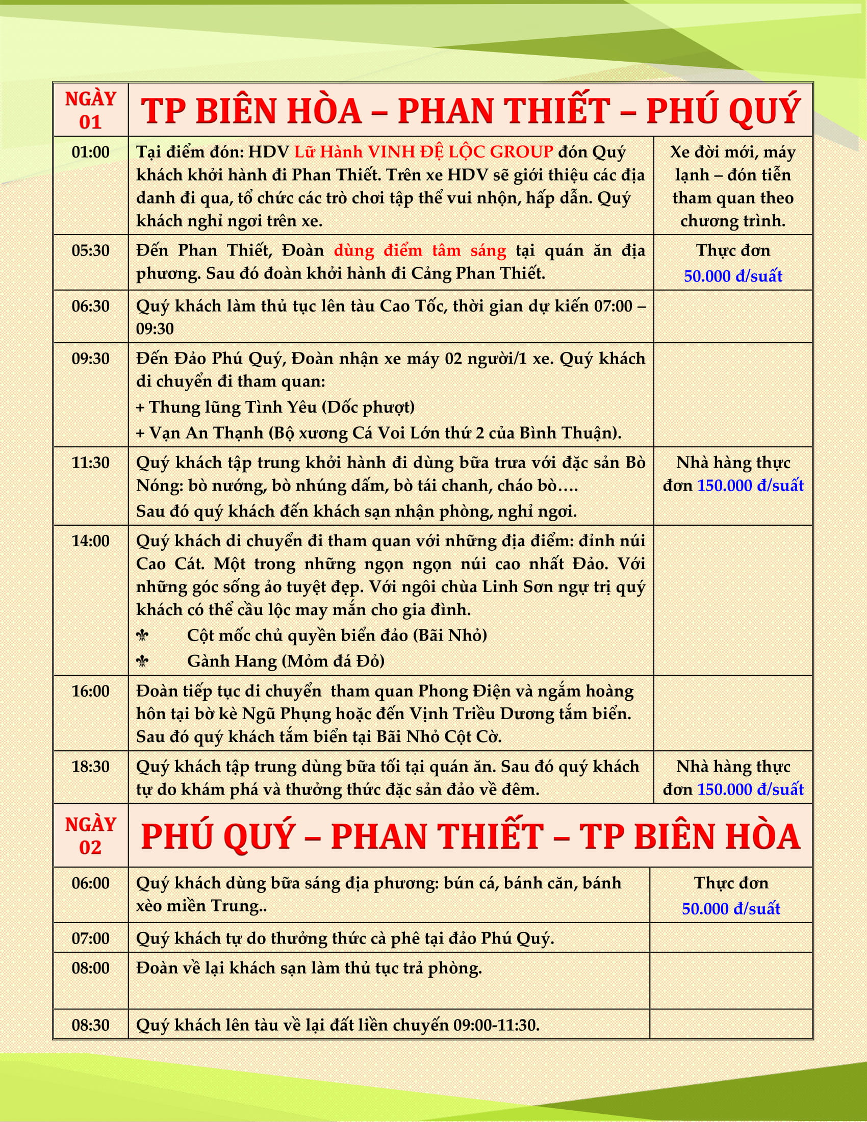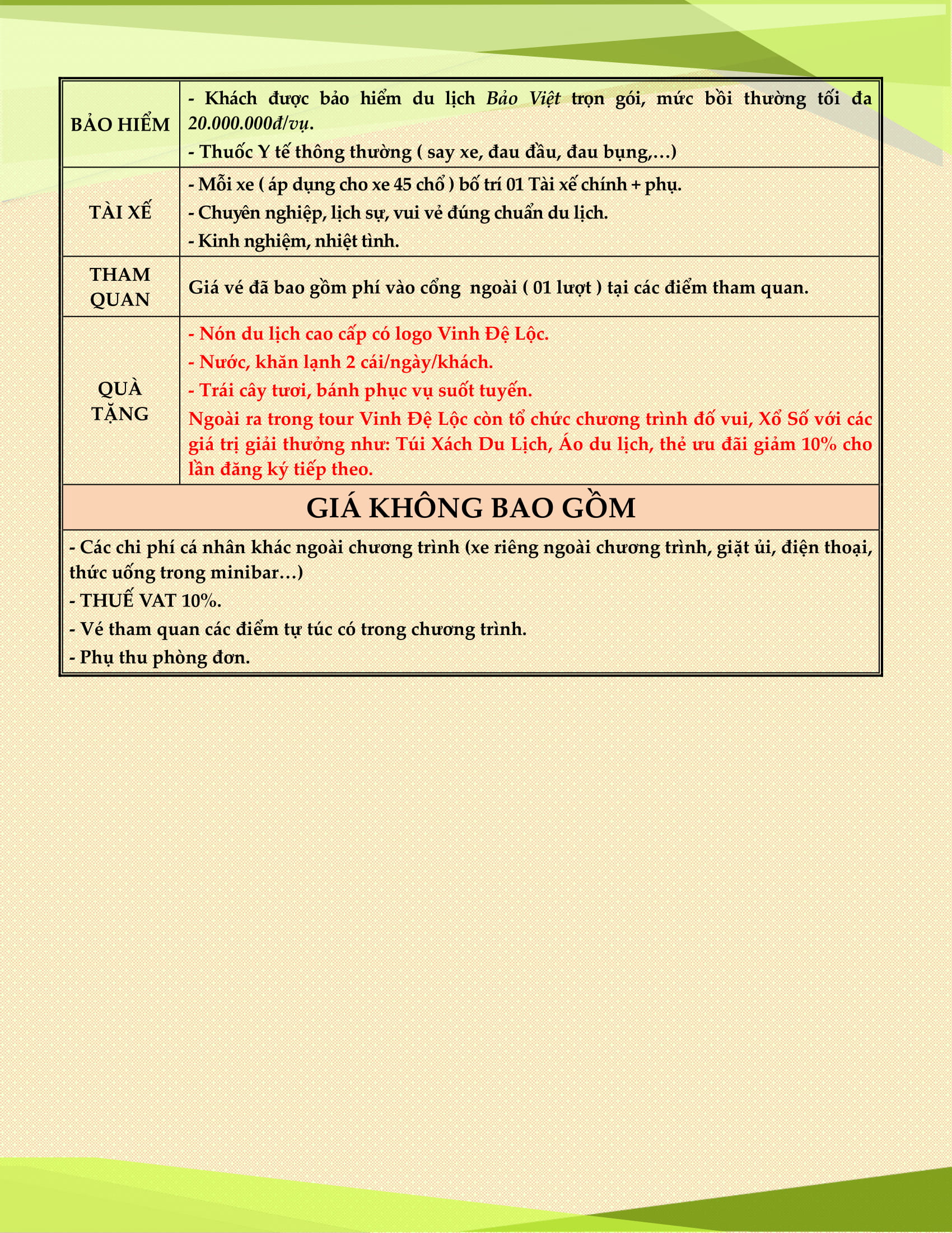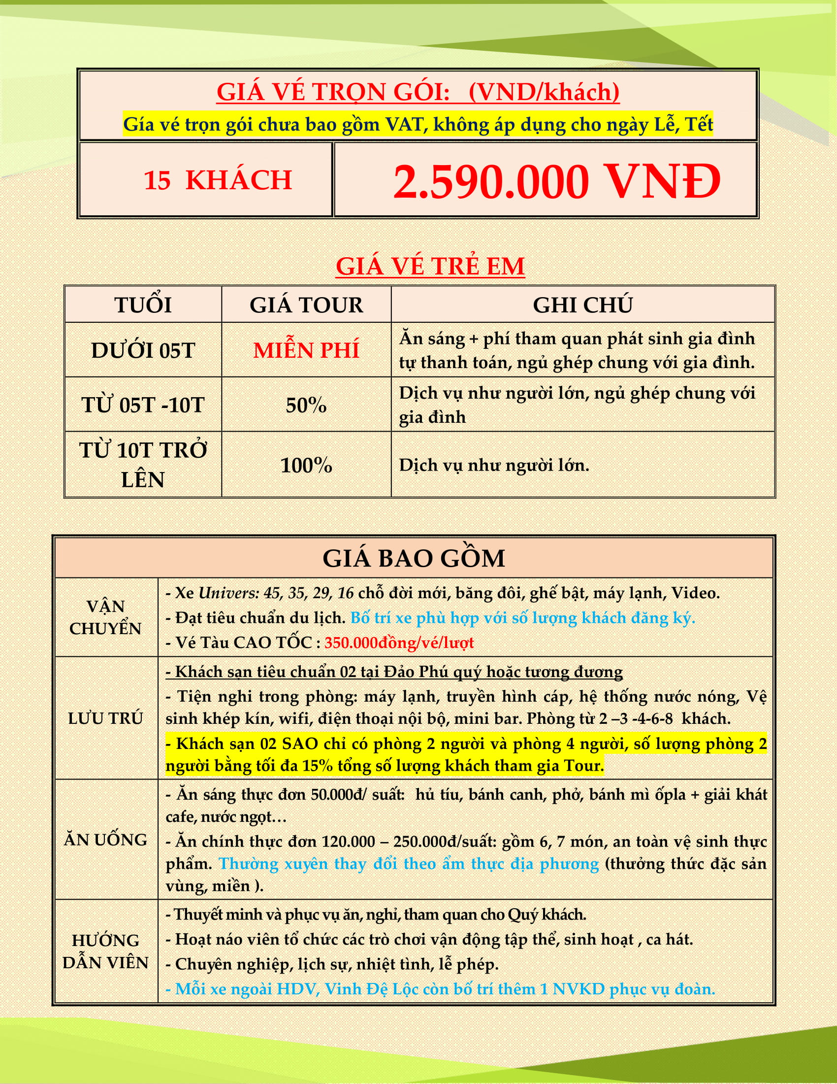 GIÁ VÉ TRỌN GÓI:   (VND/khách)
