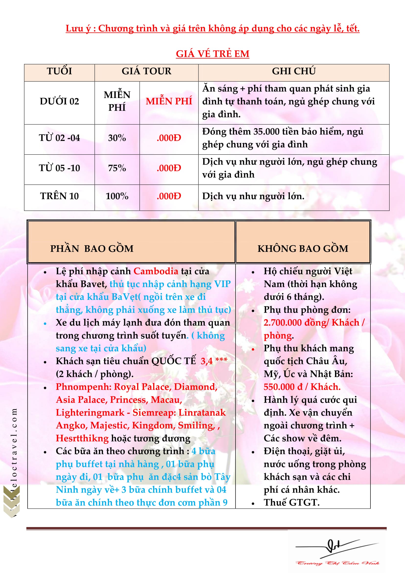 GIÁ VÉ TRỌN GÓI:   (VND/khách)