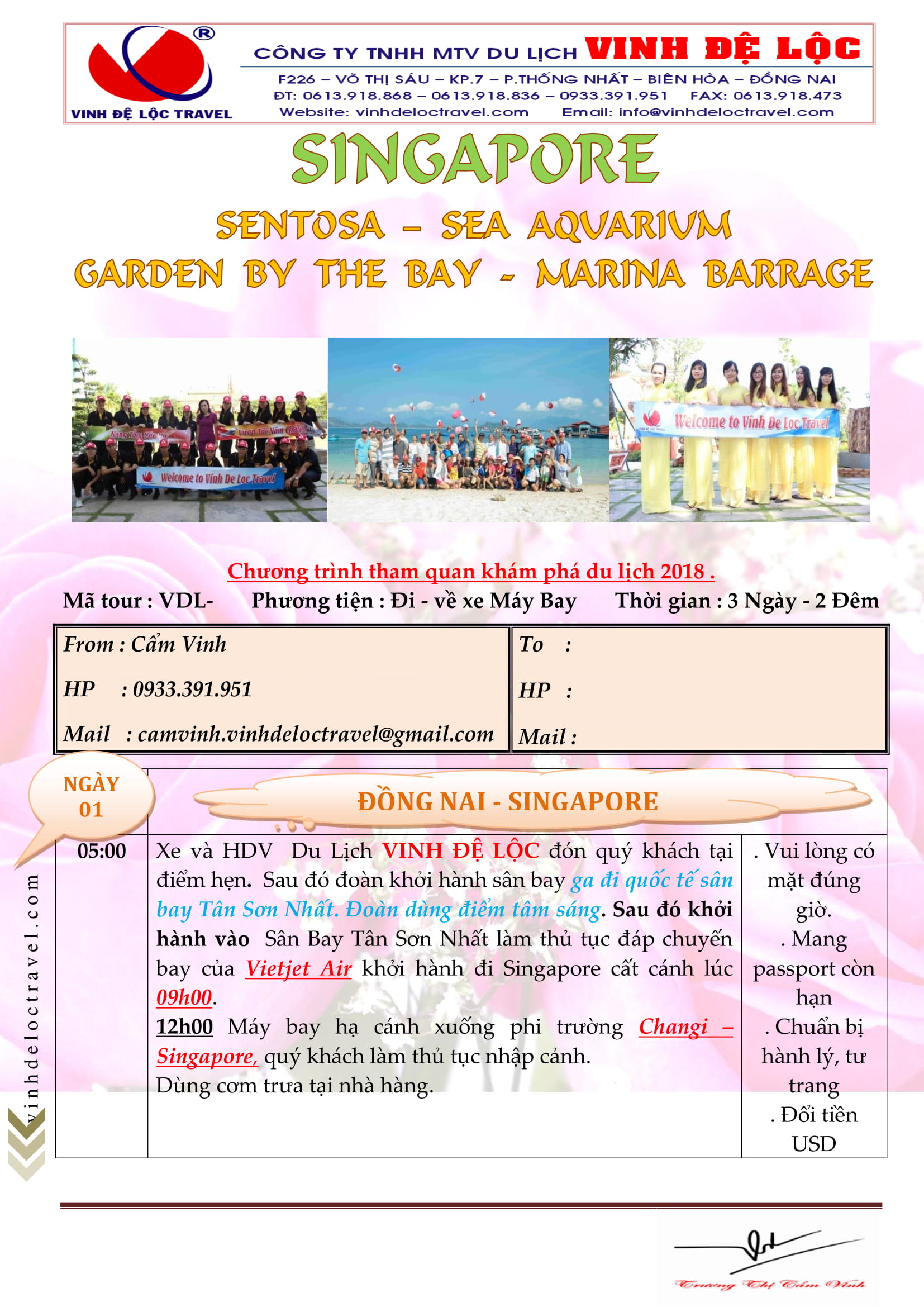 SINGAPORE (SENTOSA – SEA AQUARIUM GARDEN BY THE BAY - MARINA BARRAGE) 3N2Đ
