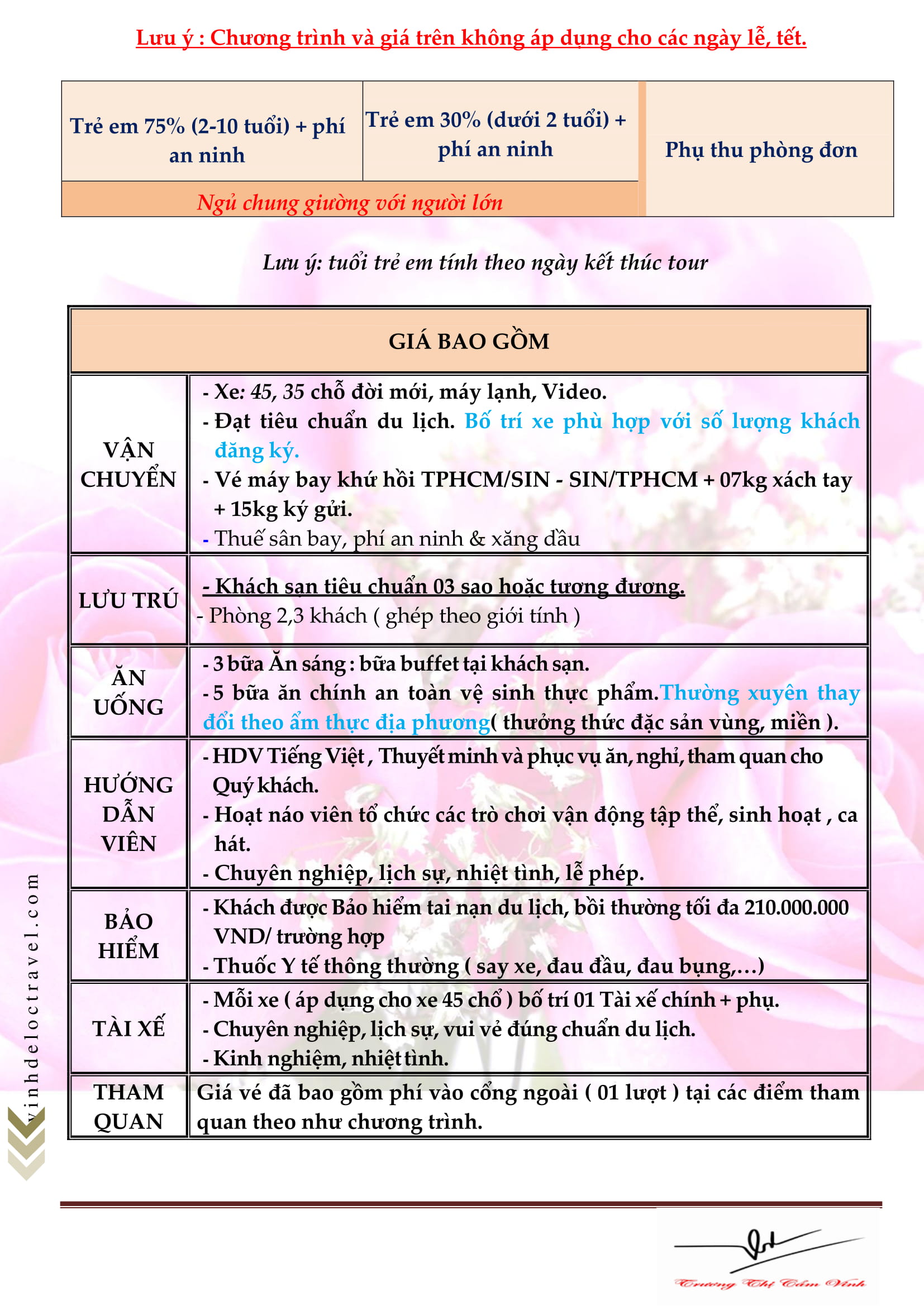 GIÁ VÉ TRỌN GÓI:   (VND/khách)