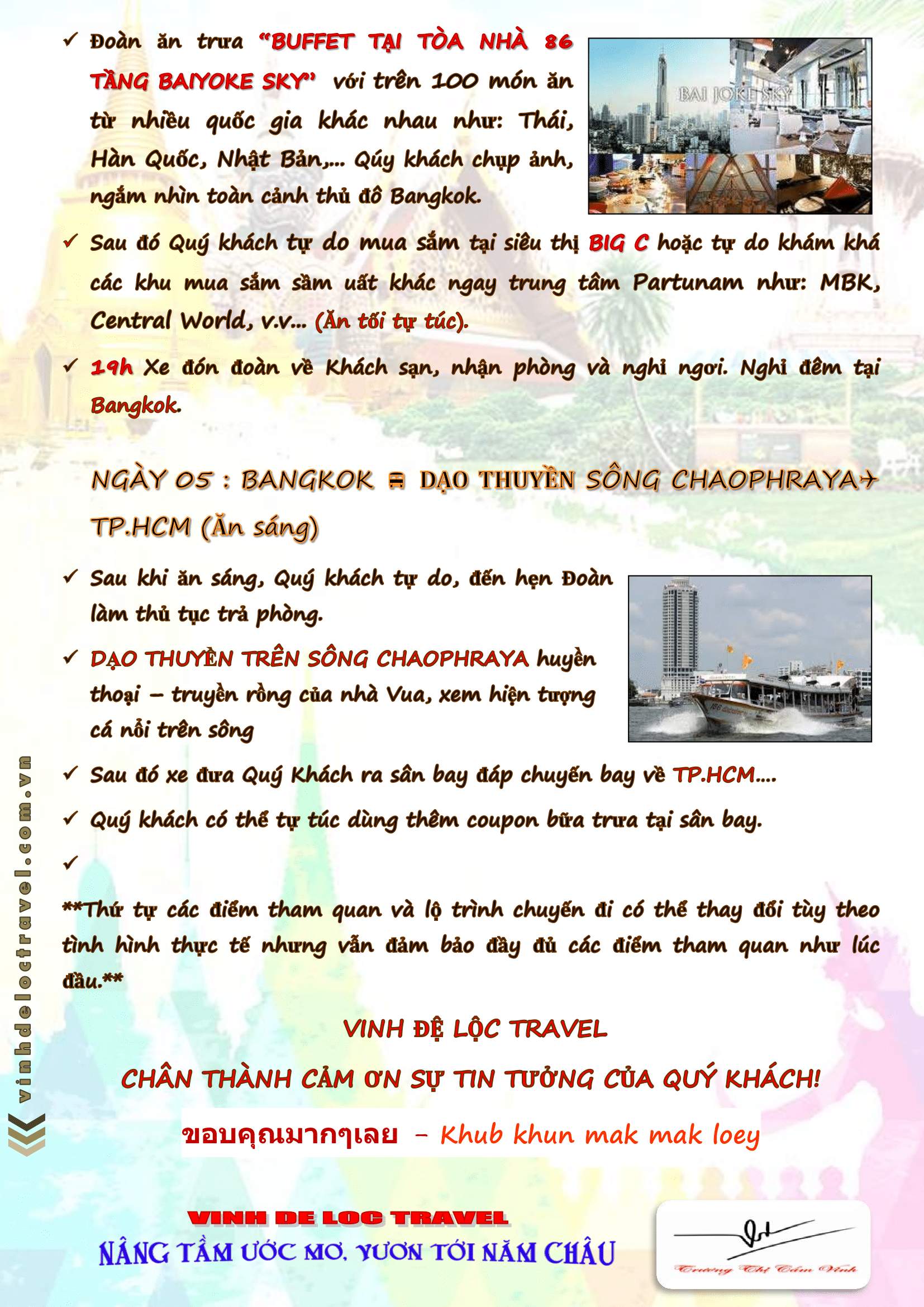 THÁI LAN 5N4Đ NHIỀU ƯU ĐÃI khởi hành T10/2019
