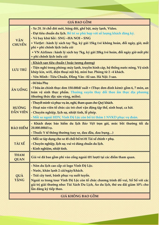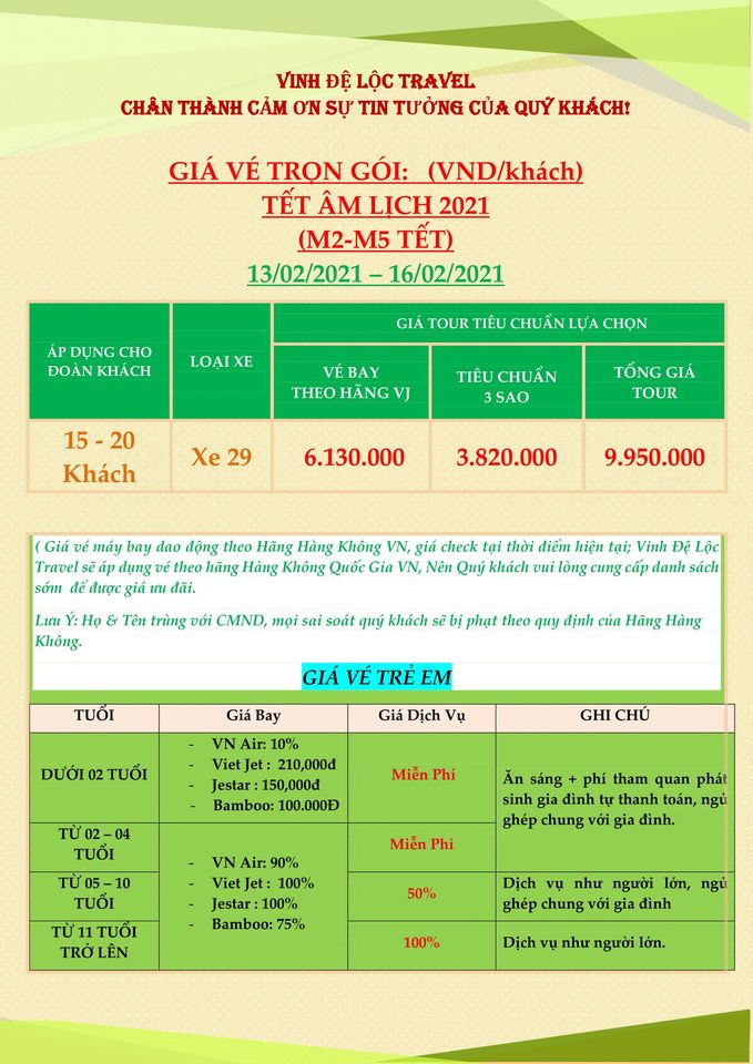 GIÁ VÉ TRỌN GÓI:   (VND/khách)