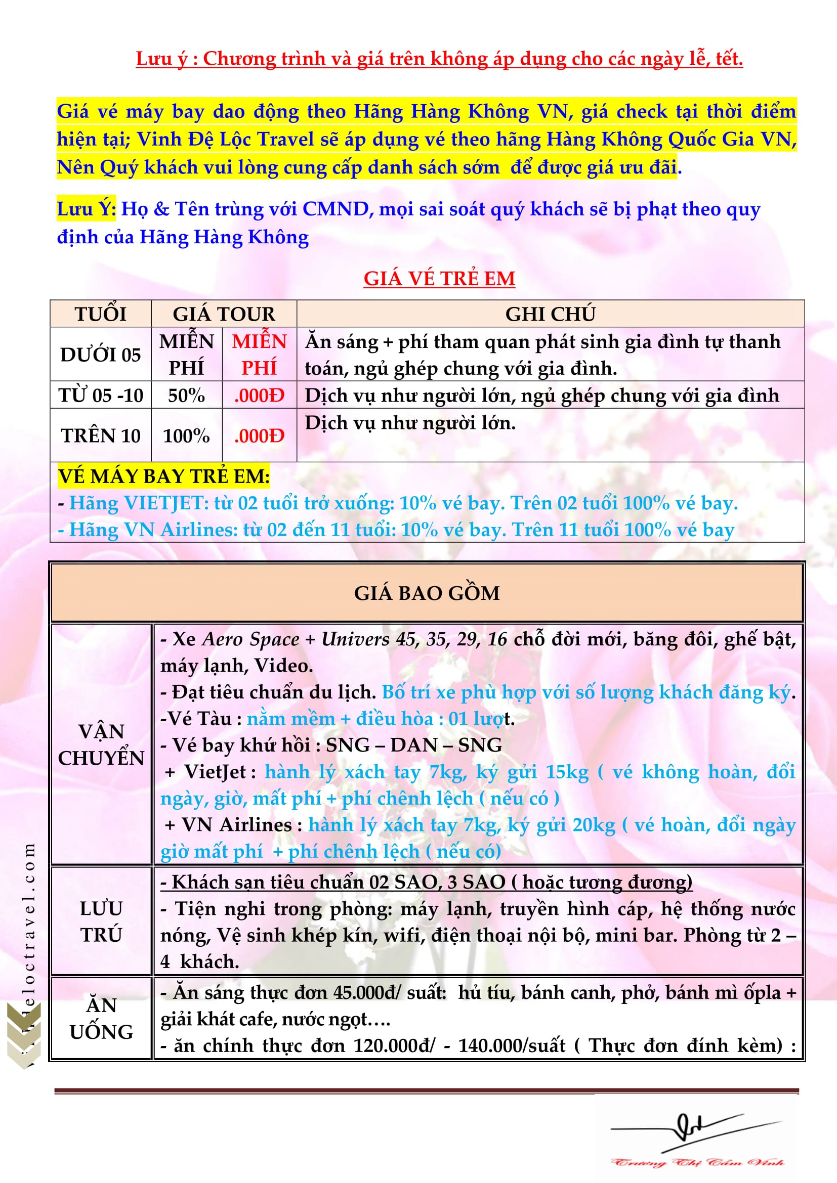 GIÁ VÉ TRỌN GÓI:   (VND/khách)