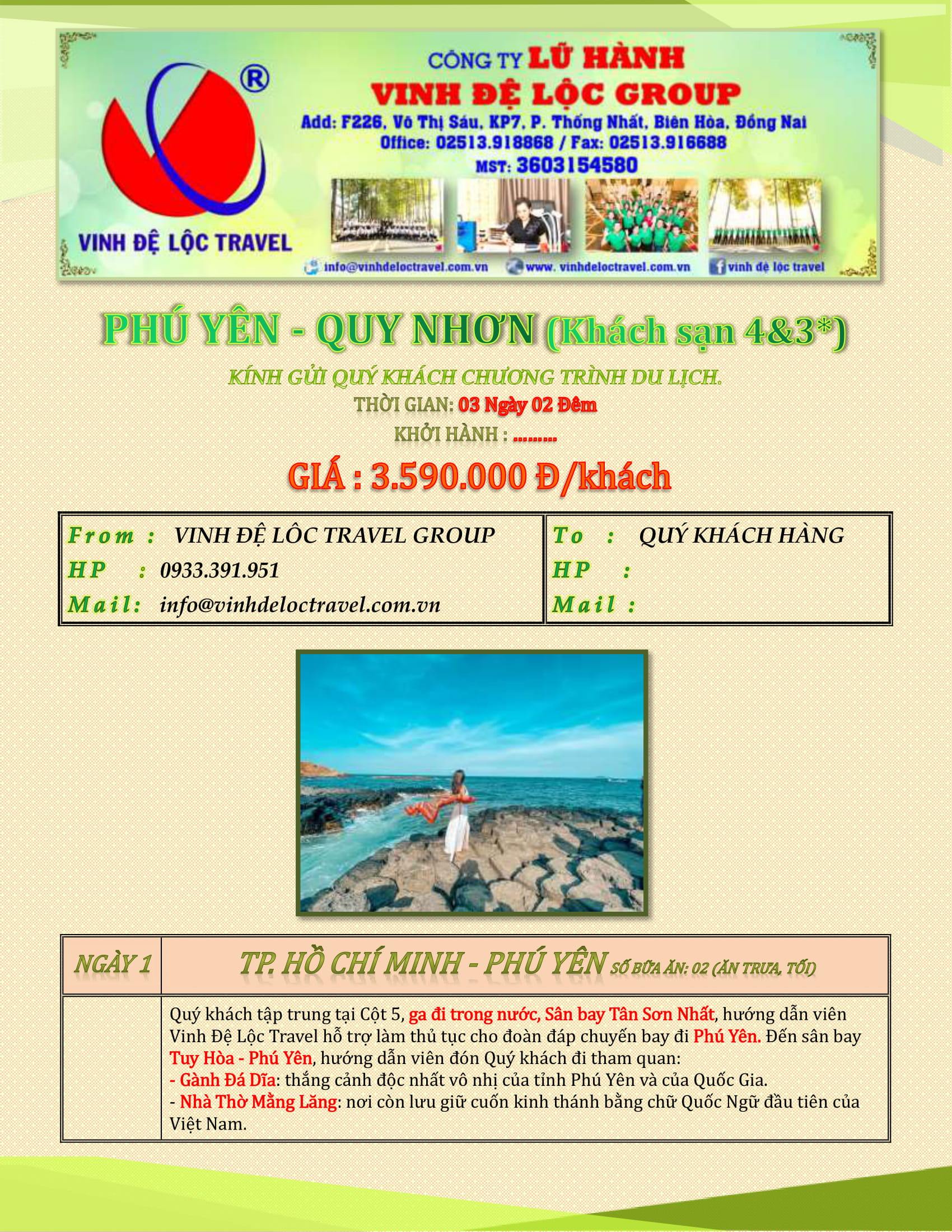 PHÚ YÊN - QUY NHƠN (Khách sạn 4&3*) 3N2Đ