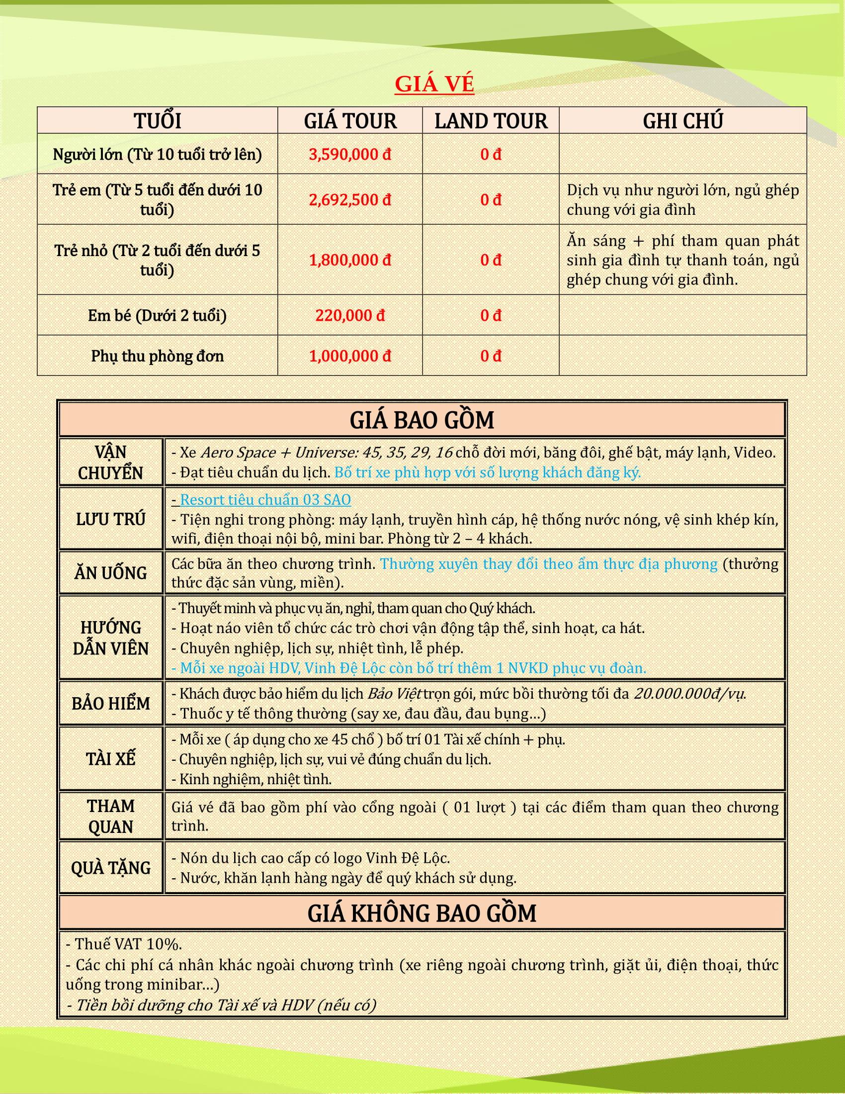 GIÁ VÉ TRỌN GÓI:   (VND/khách)