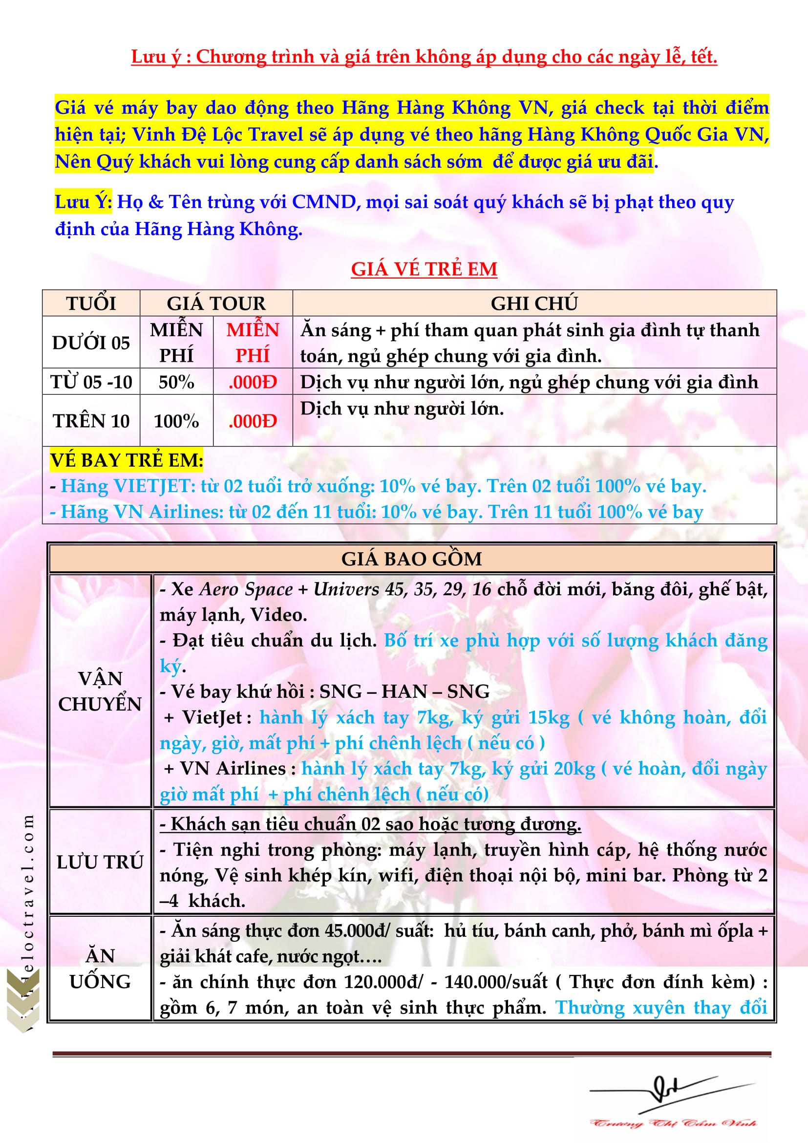 GIÁ VÉ TRỌN GÓI:   (VND/khách)