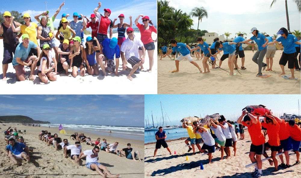 - Team building tổ chức những trò chơi phối hợp nhiều hình thức vận động từ đơn giãn như chạy bộ, trườn, bò đến bơi lội hoặc chèo thuyền… , tour “team building” có thể tổ chức ở mọi nơi tùy vào yêu cầu khách hàng.