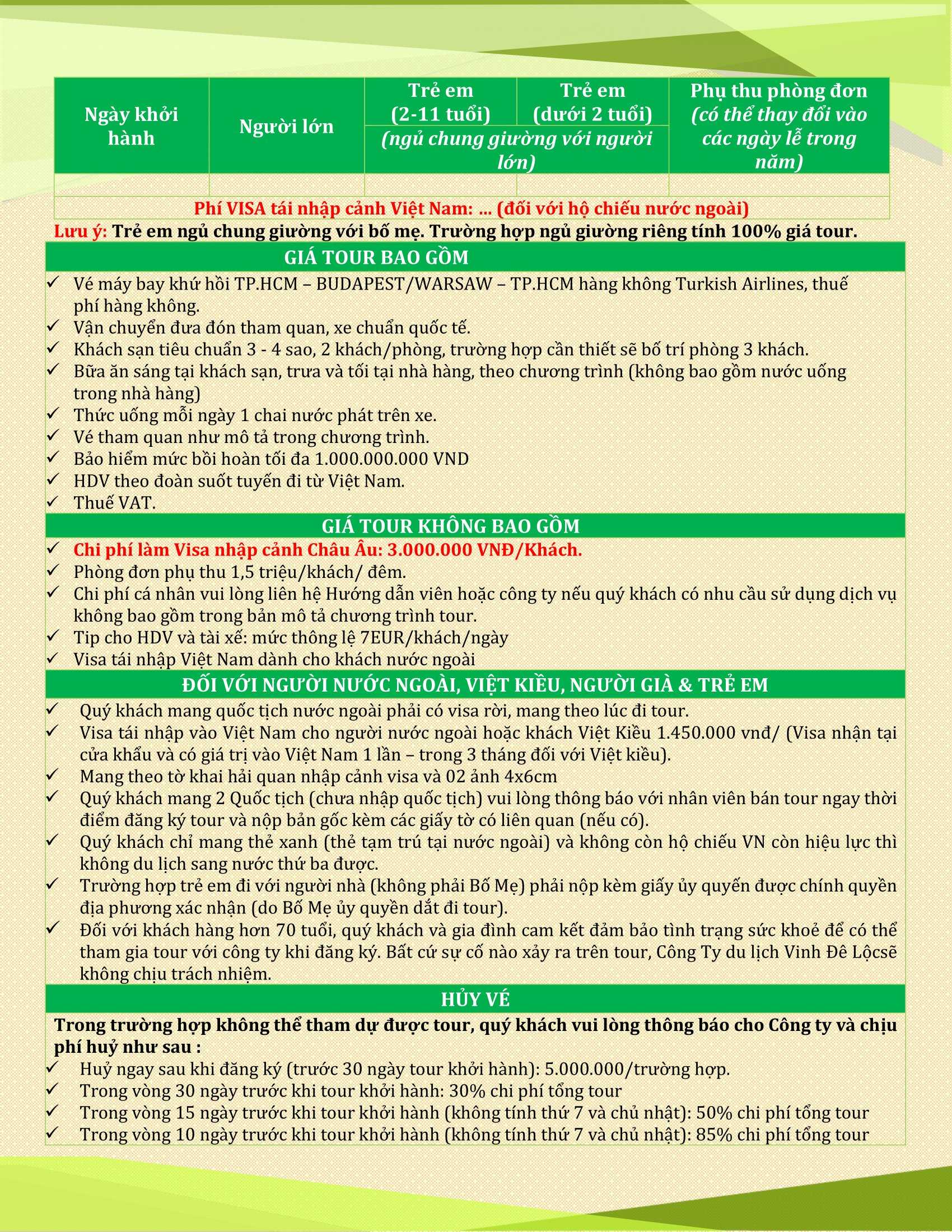 GIÁ VÉ TRỌN GÓI:   (VND/khách)