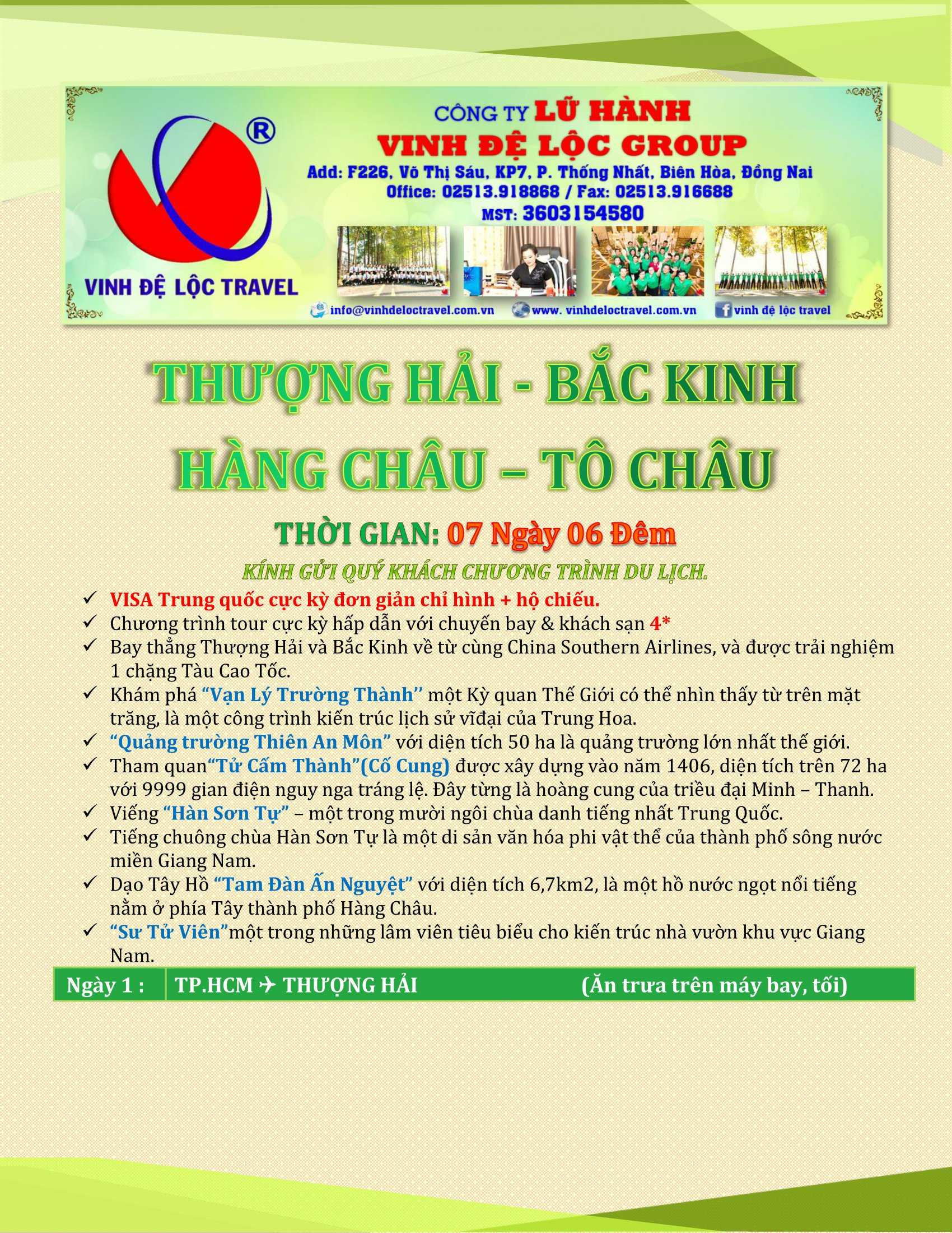 TRUNG QUỐC - THƯỢNG HẢI - BẮC KINH - HÀNG CHÂU - TÔ CHÂU 7N6D