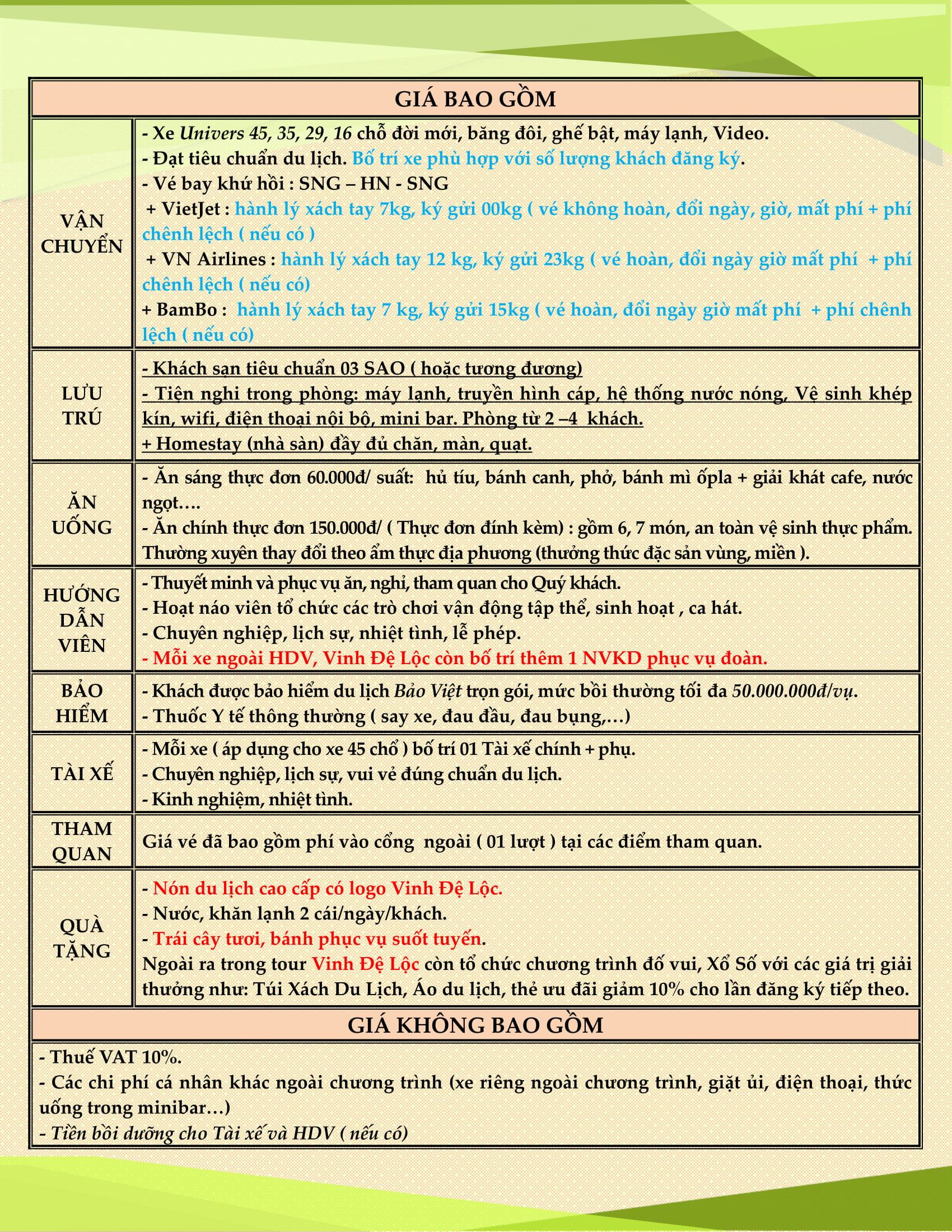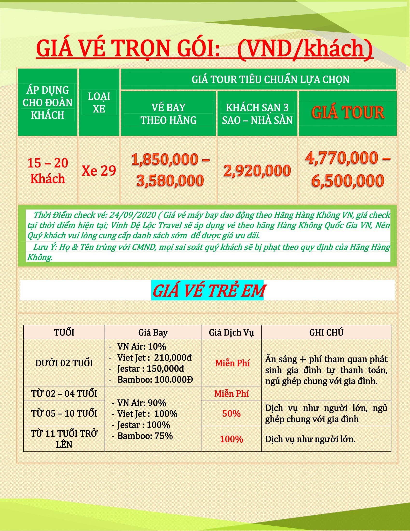 GIÁ VÉ TRỌN GÓI:   (VND/khách)