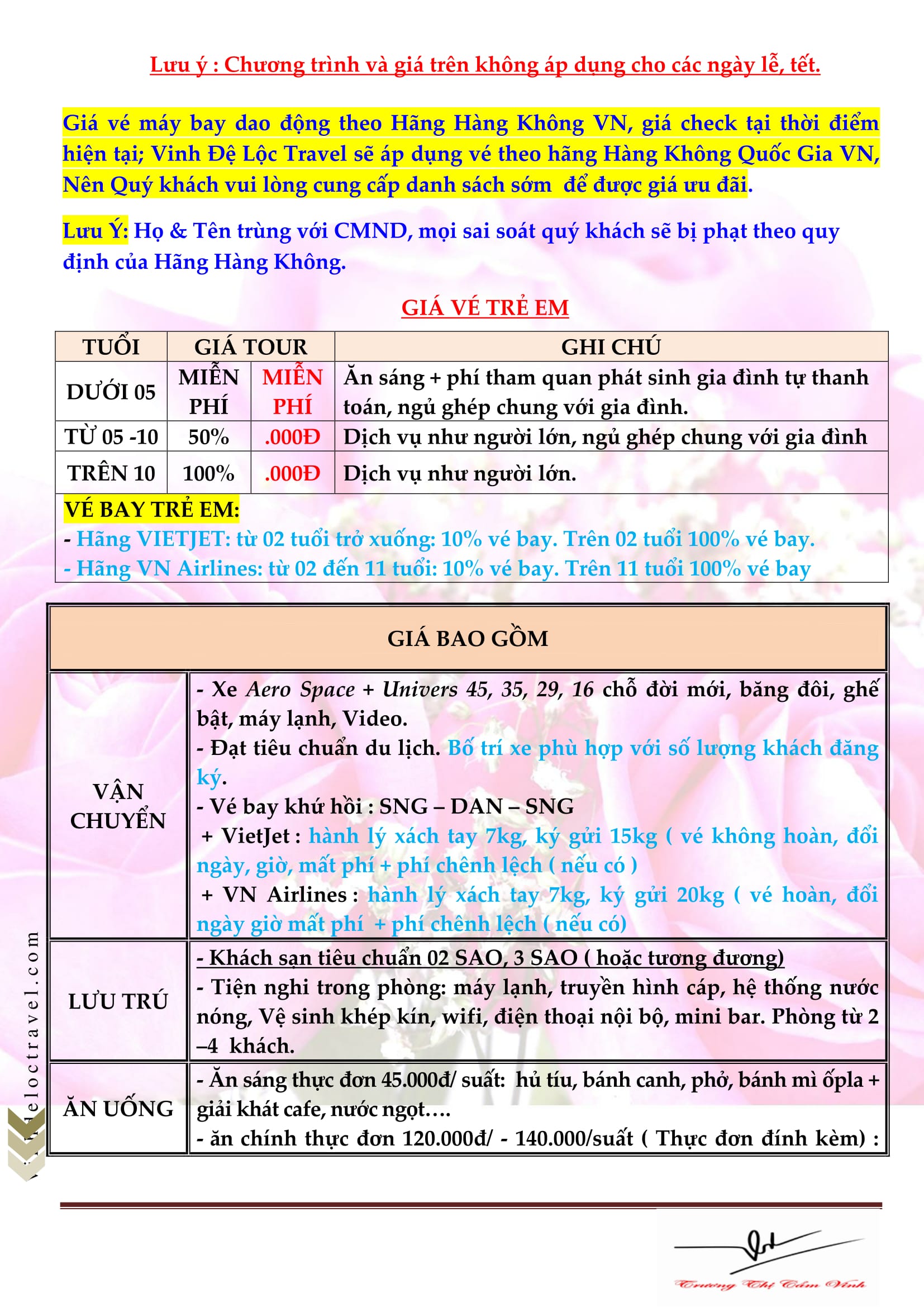 GIÁ VÉ TRỌN GÓI:   (VND/khách)