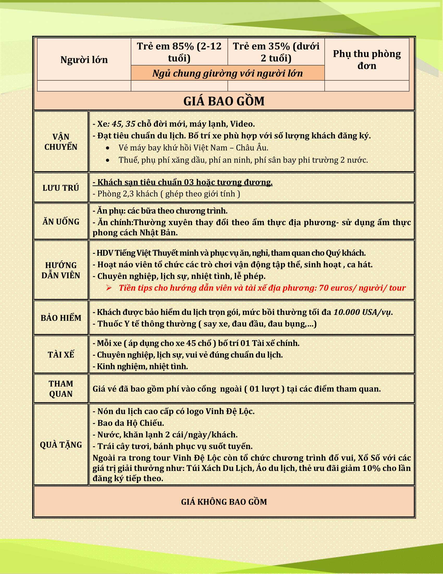 GIÁ VÉ TRỌN GÓI:   (VND/khách)