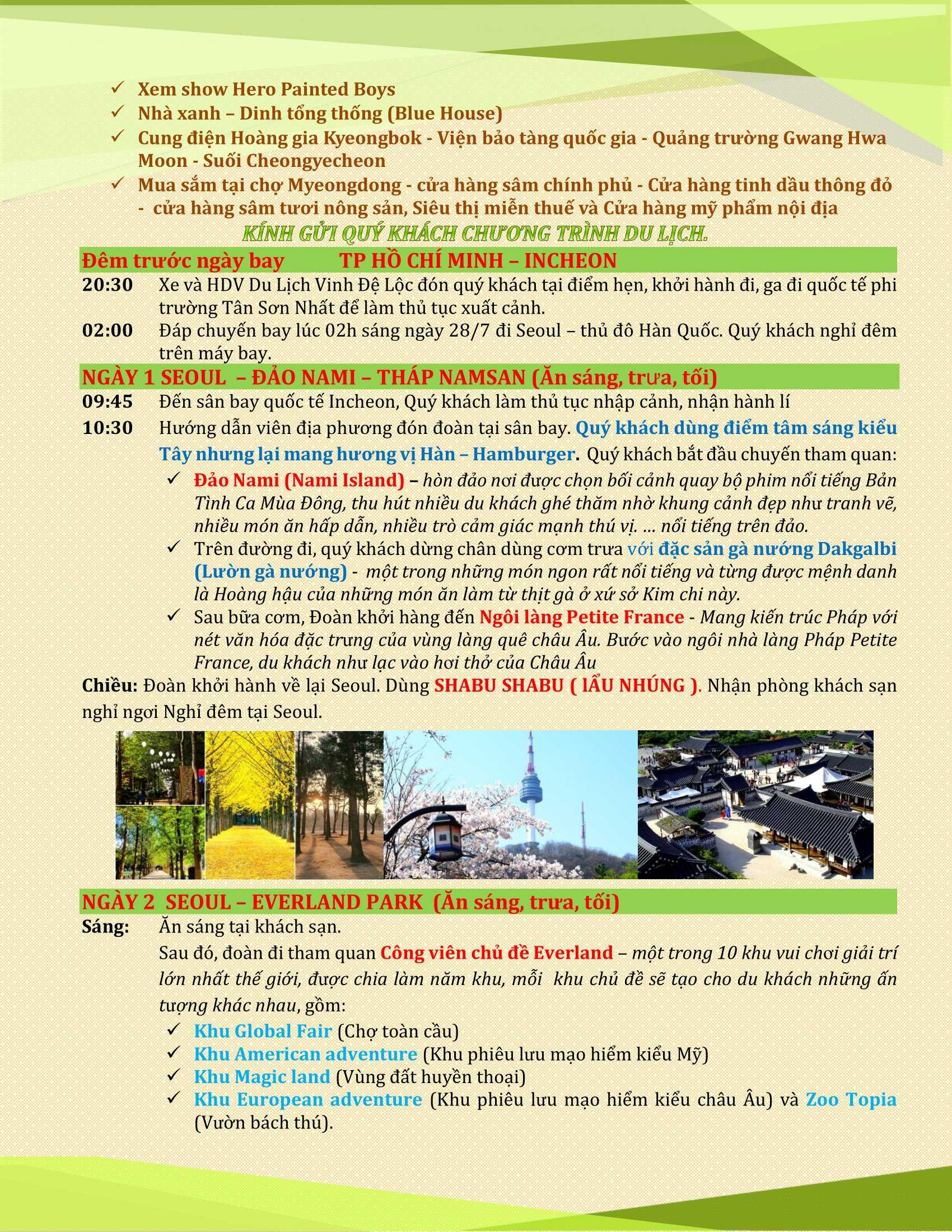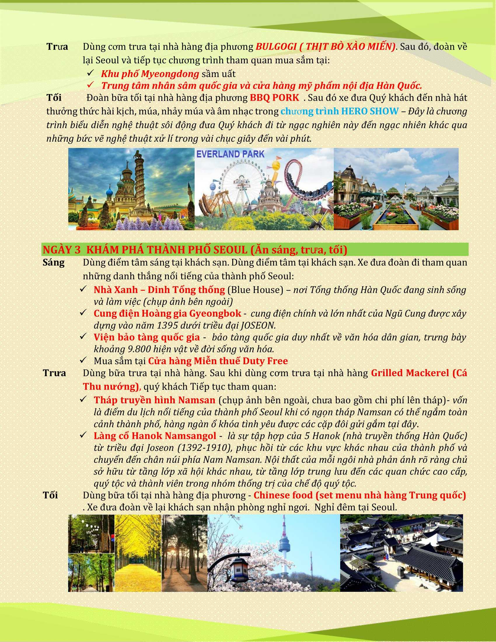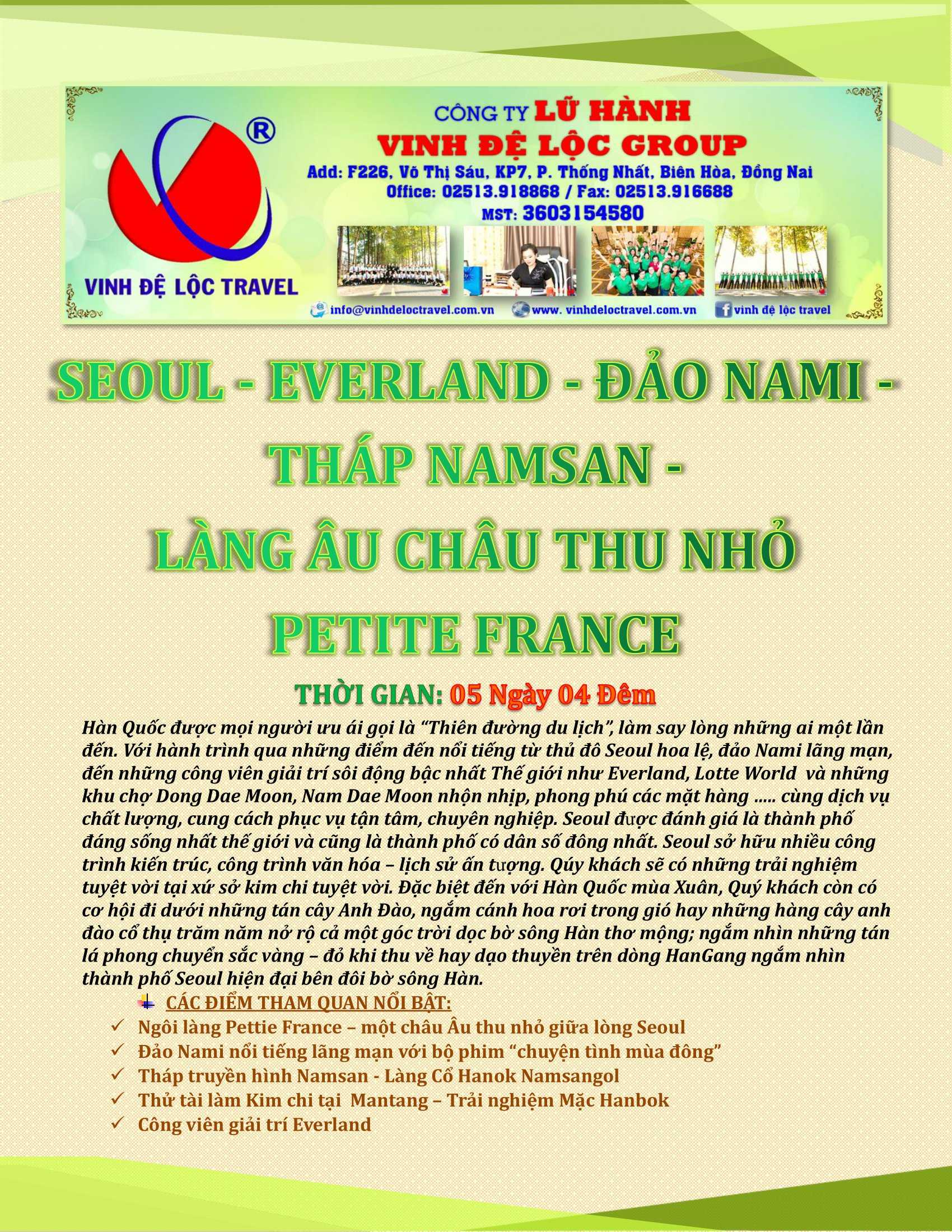 SEOUL - EVERLAND - ĐẢO NAMI - THÁP NAMSAN - LÀNG ÂU CHÂU THU NHỎ PETITE FRANCE 5N4D