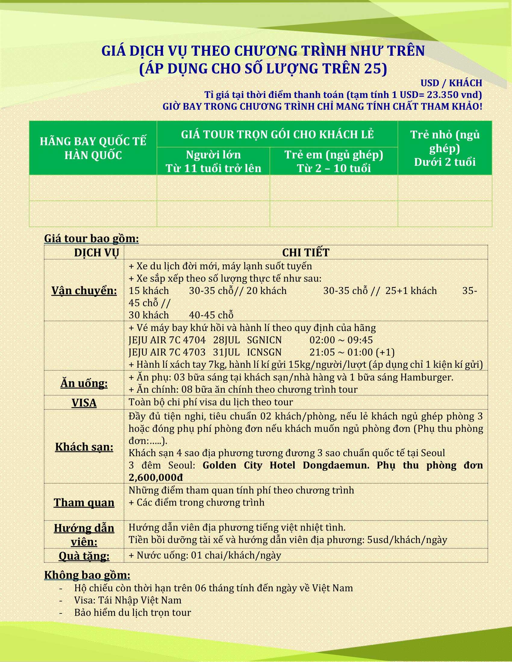 GIÁ VÉ TRỌN GÓI:   (VND/khách)